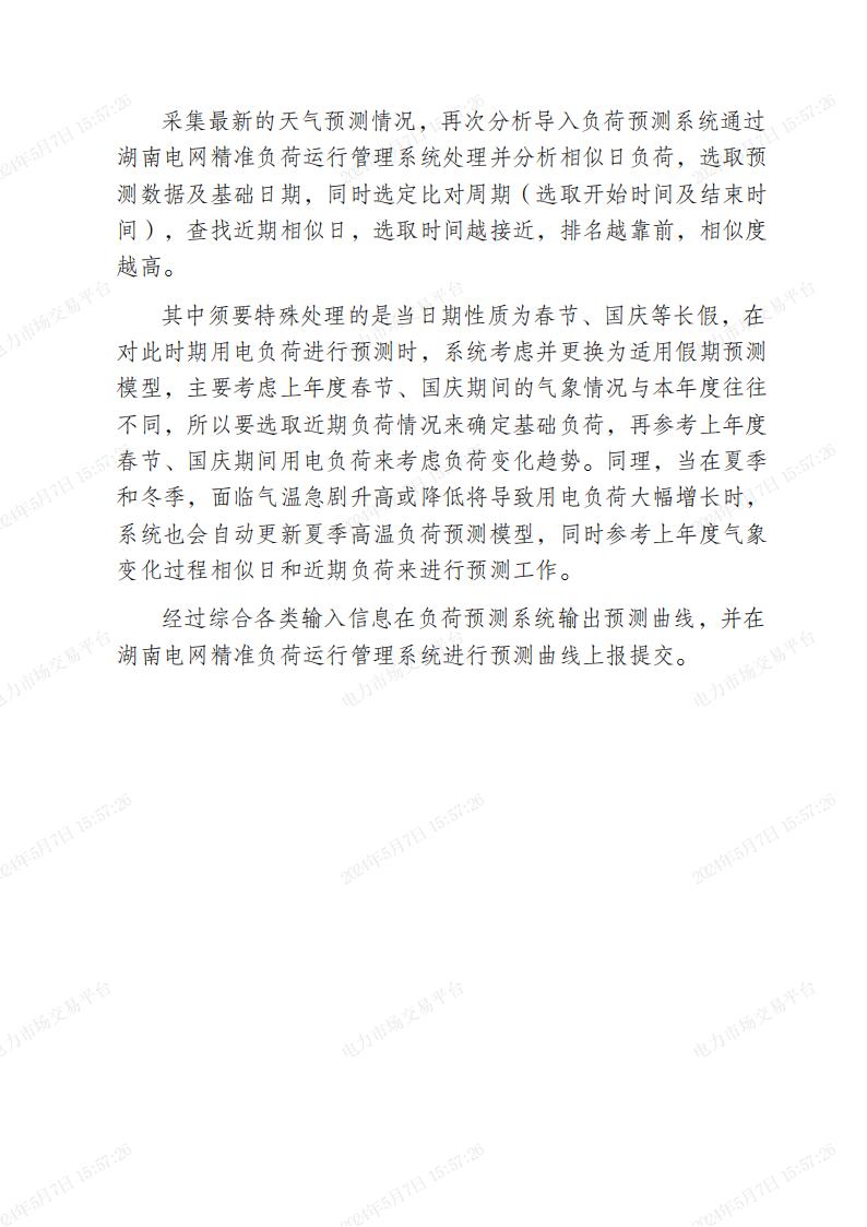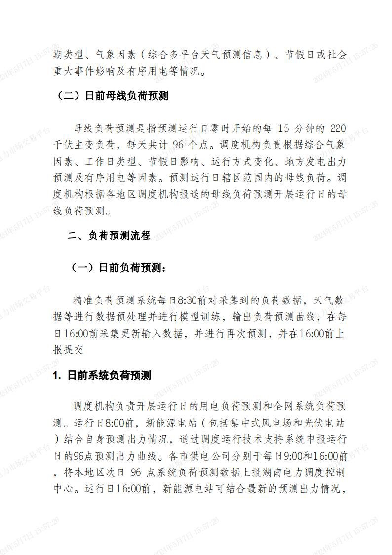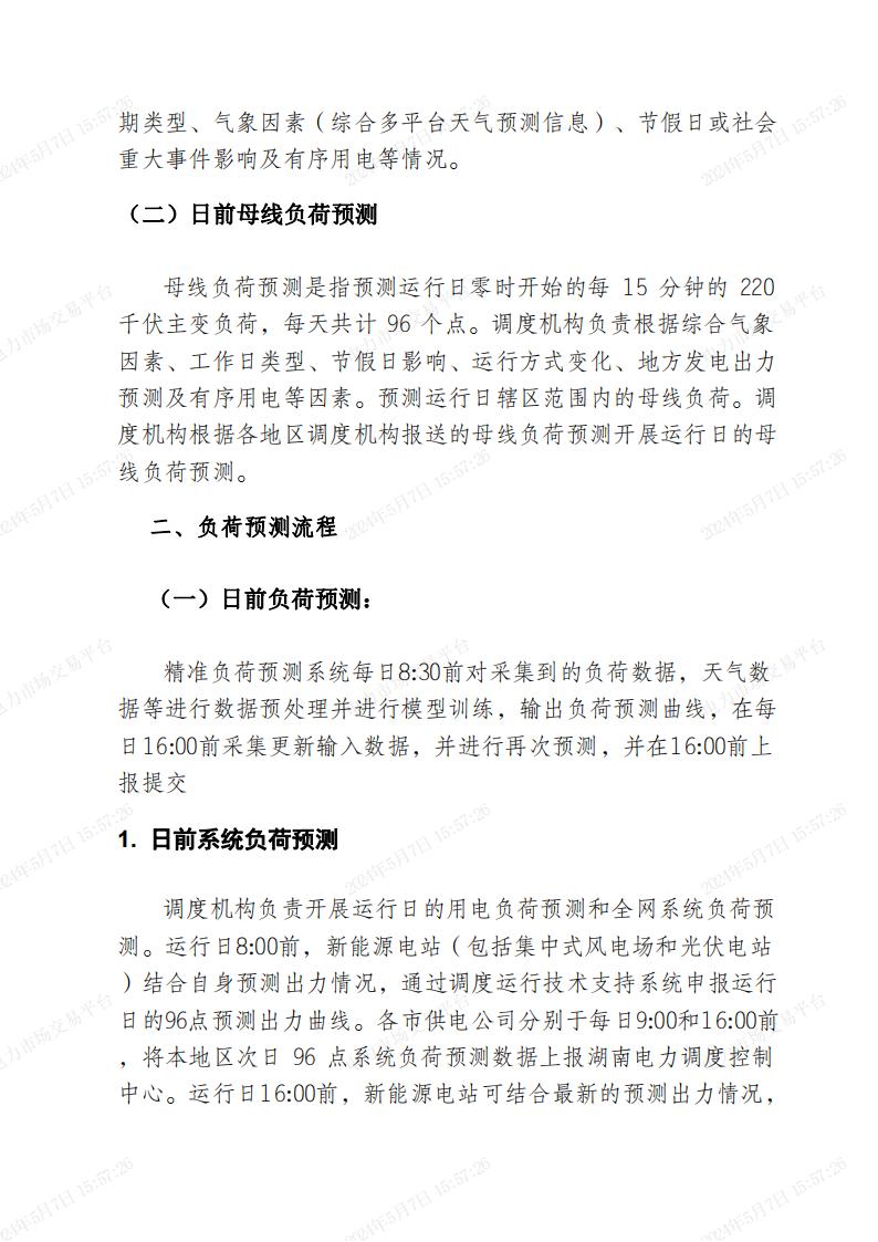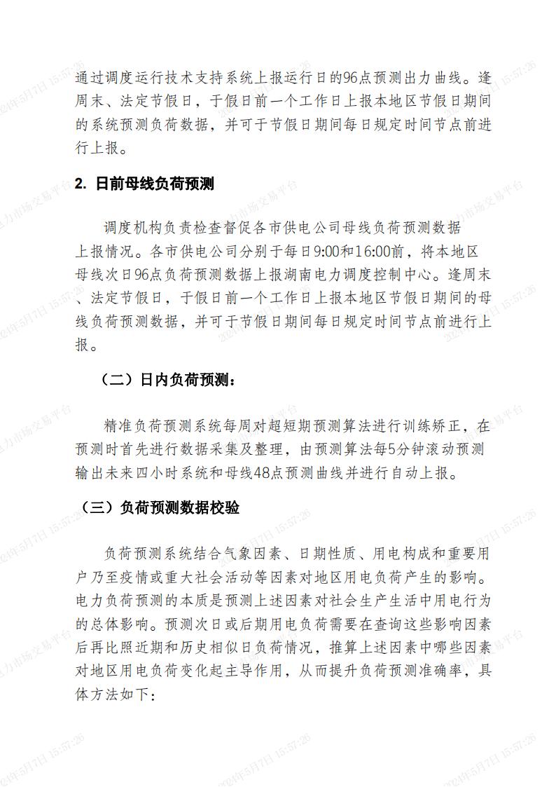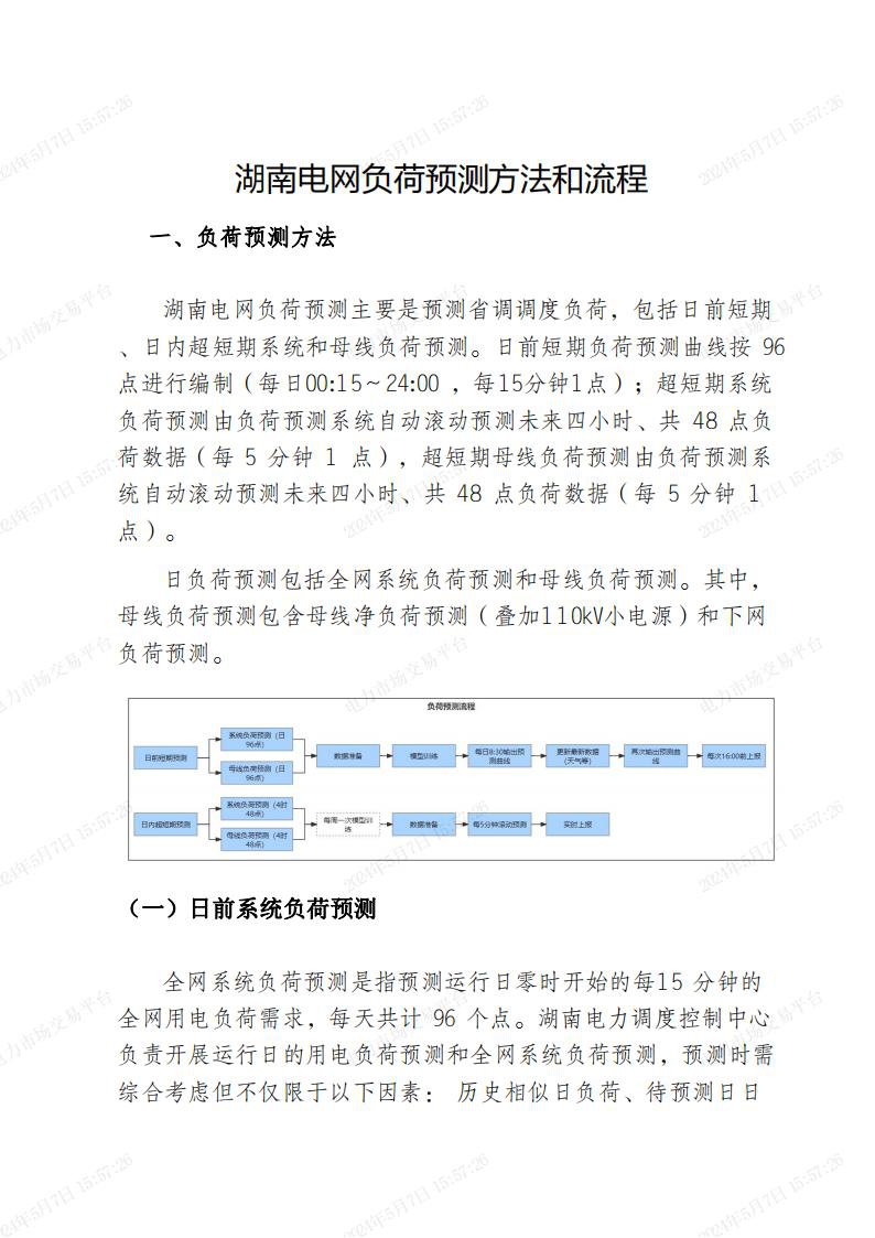 近日,湖南电力交易中心发布湖南电网负荷预测方法和流程。湖南电网负荷预测主要是预测省调调度负荷,包括日前短期、日内超短期系统和母线负荷预测。日前短期负荷预测曲线按96点进行编制(每日00:15~24:00,每15分钟1点);超短期系统 负荷预测由负荷预测系统自动滚动预测未来四小时、共48点负荷数据(每5分钟1点),超短期母线负荷预测由负荷预测系统自动滚动预测未来四小时、共48点负荷数据(每5分钟1点)。