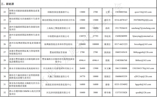 根据2024年河北省利用外资重点招商項目目录显示,本次入选的新能源项目总计12个,包括邯郸市邱县新能源装备制造产业园项目、承德市丰甯经开区风力发电塔筒智能制造项目 、承德市丰宁满族自治县电解水制氢设备制造项目等。