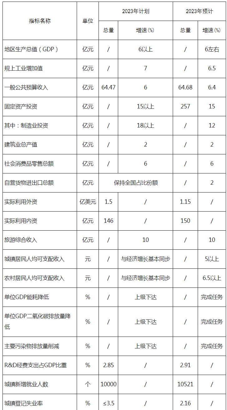 结合宏观环境和象山实际,坚持稳中求进、以进促稳、先立后破,兼顾必要性、可行性,建议我县2024年主要预期指标安排如下: