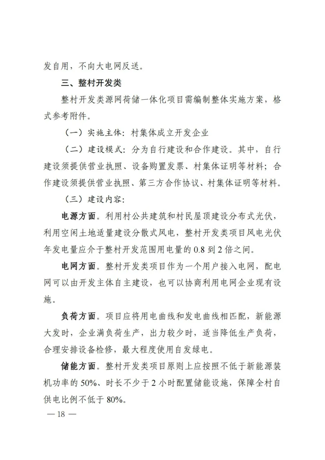 储能方面,整村开发类项目原则上应按照不低于新能源装机功率的50%、时长不少于2小时配置储能设施,保障全村自供电比例不低于80%。