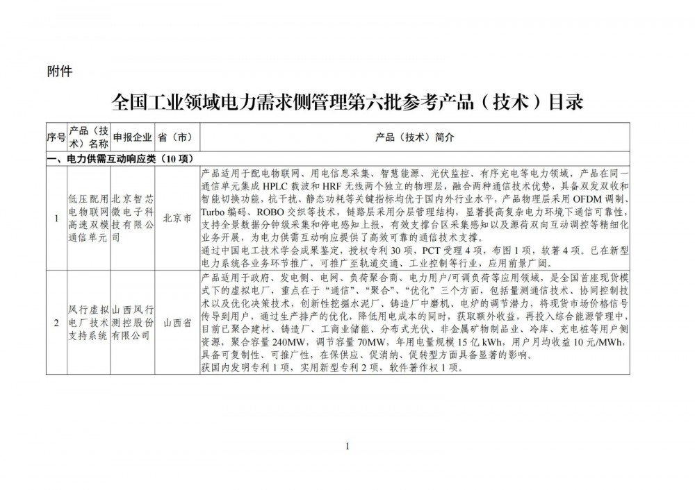 附件:全国工业领域电力需求侧管理第六批参考产品(技术)目录
