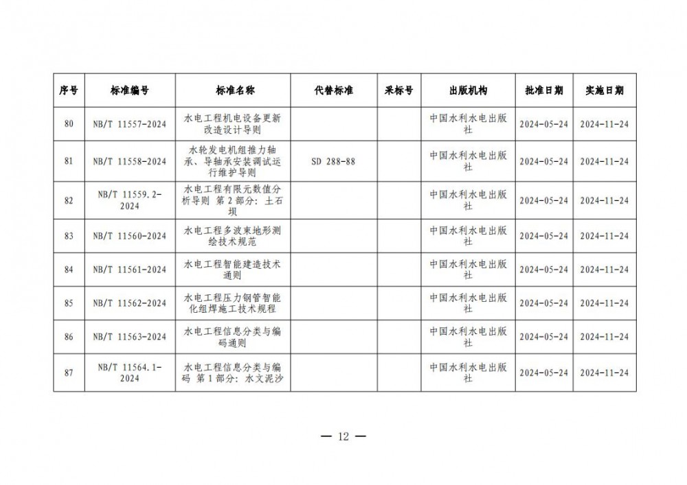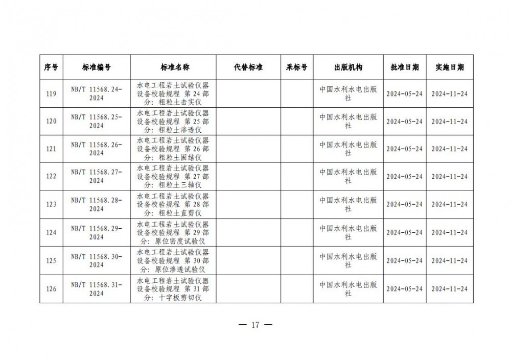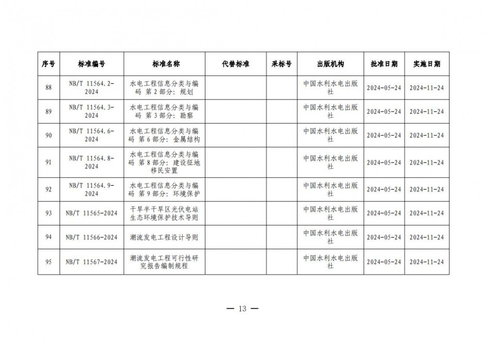 根据《中华人民共和国标准化法》《能源标准化管理办法》,国家能源局批准《直接串入式线路静止同步补偿装置》等335项能源行业标准(附件1)、《Specification for Reservoir Area Engineering Geological Investigation of Hydropower Projects》等20项能源行业标准外文版(附件2)、《水工混凝土结构设计规范》等4项能源行业标准修改通知单(附件3),现予以发布。