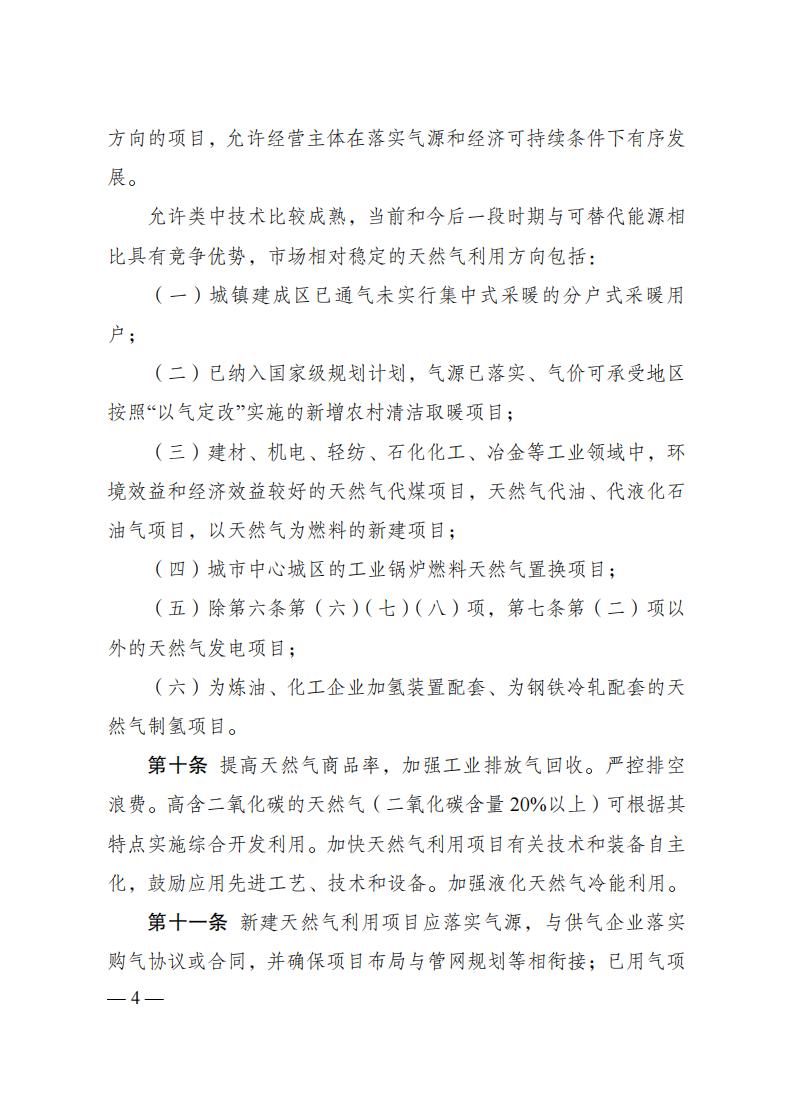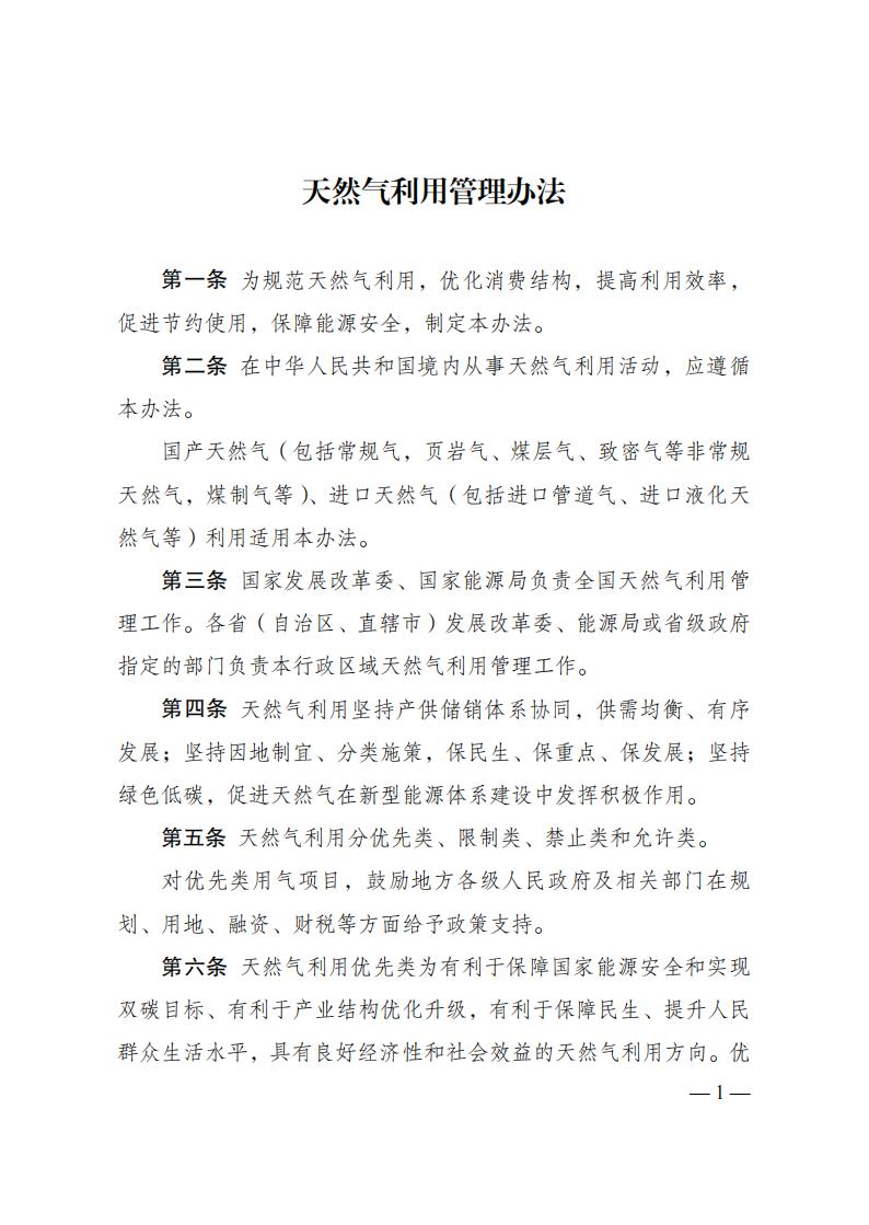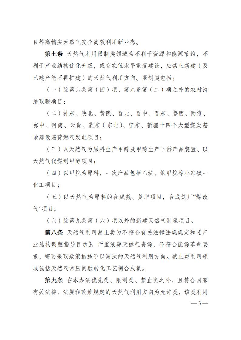 1、天然气利用分优先类、限制类、禁止类和允许类。其中优先类包括油气电氢综合能源供应项目、终端天然气掺氢示范项目等高精尖天然气安全高效利用新业态。