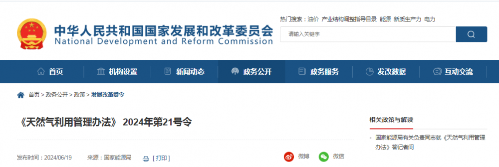 6月19日,国家发改委发布了《天然气利用管理办法》,国家能源局有关负责同志并就《天然气利用管理办法》答记者问。