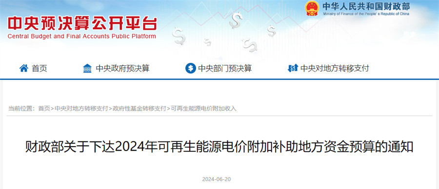 6月20日,财政部下发《关于下达2024年可再生能源电价附加补助地方资金预算的通知》,下发2024年的地方电网的可再生能源补贴。本年度一共将下发54.0457亿元,本次将下发2.2257亿元。详情如下: