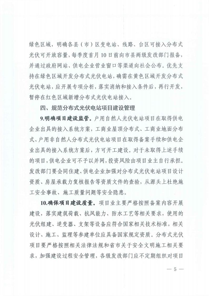 文件明确,优先支持在绿色区域开发分布式光伏电站,确需在黄色区域开发分布式光伏电站,应开展专项分析,落实消纳和接入条件后,再行开发,暂停在红色区域新增分布式光伏电站接入。