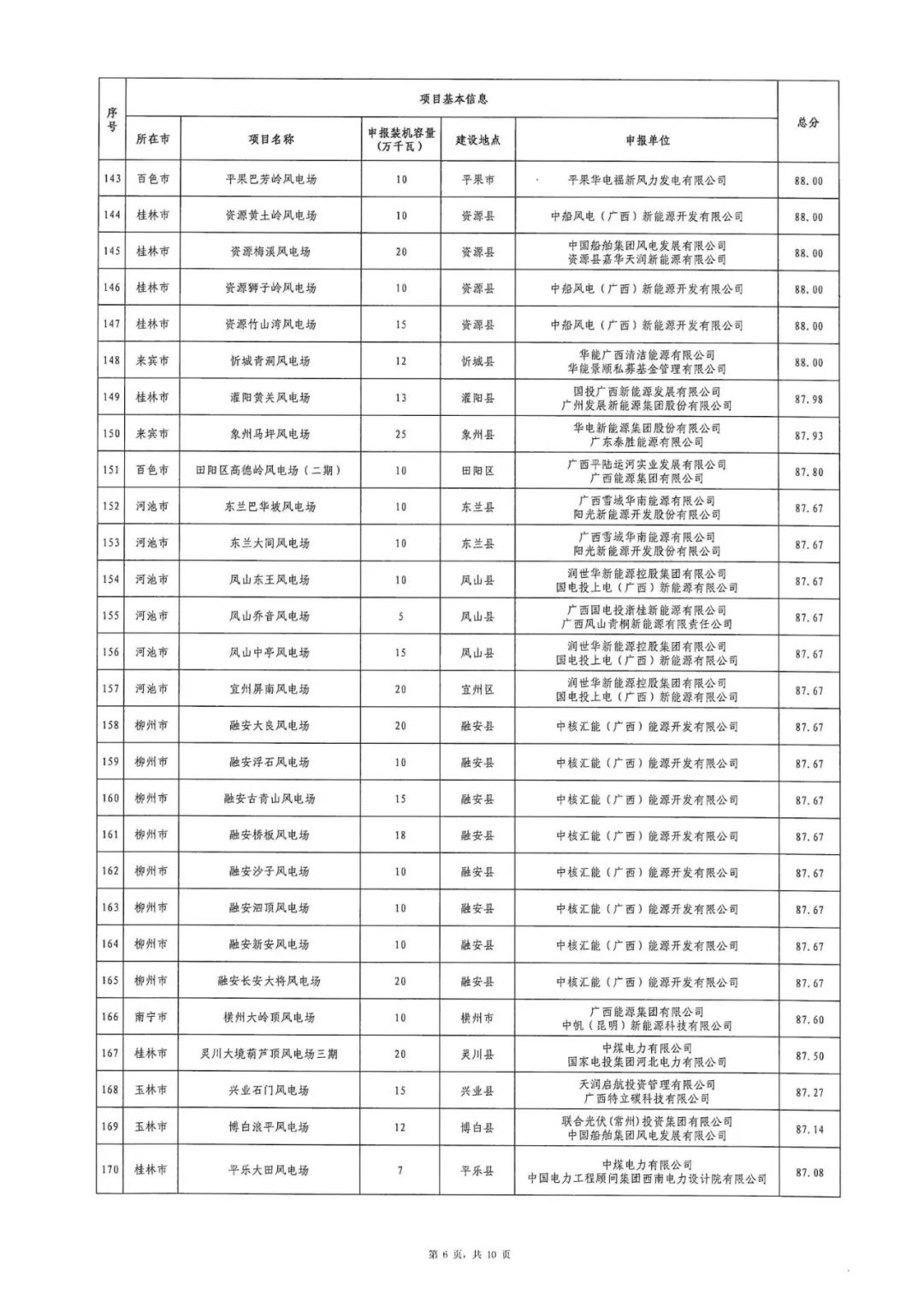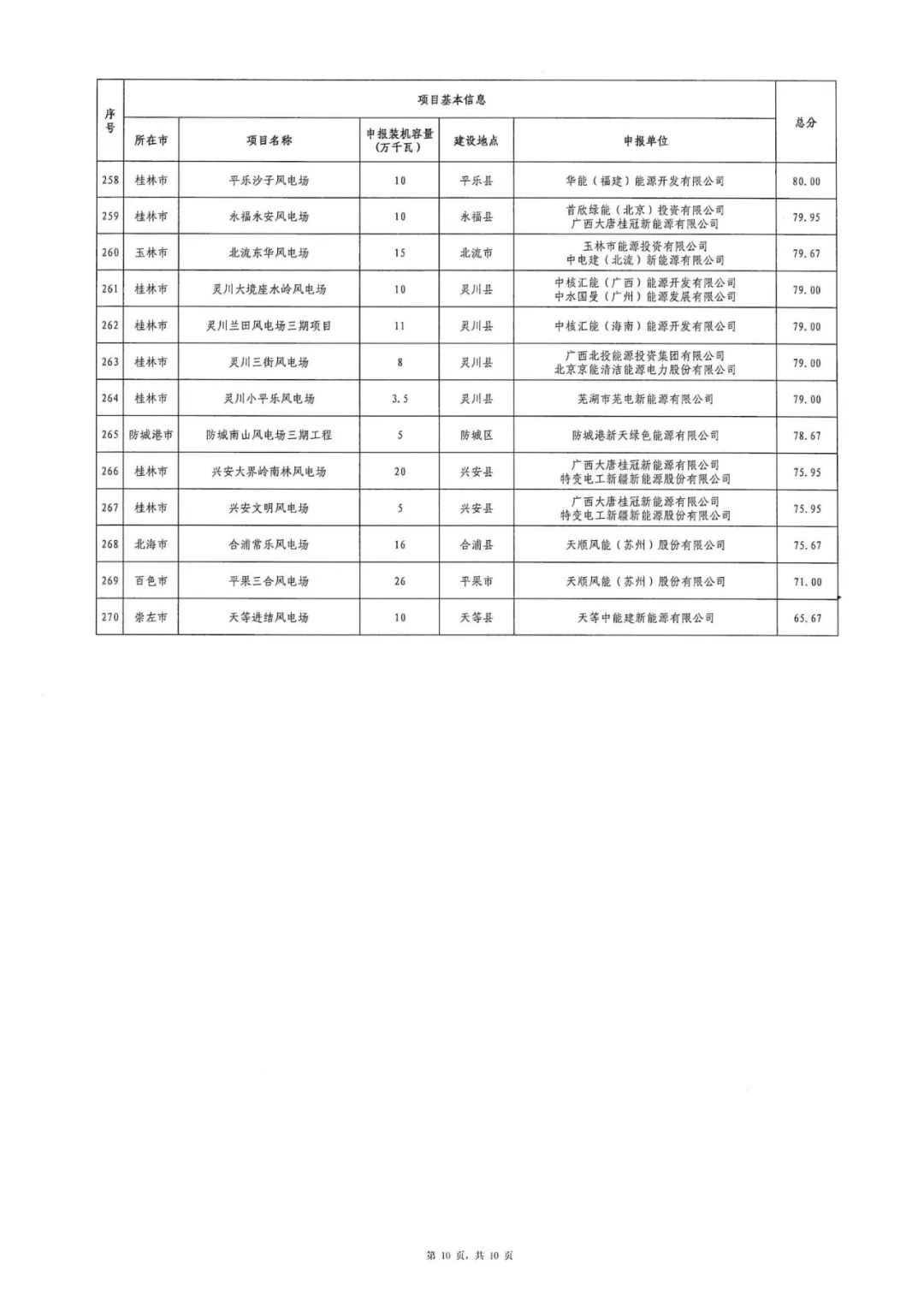 附件:1.2024年广西陆上风电项目竞争性配置评分结果表