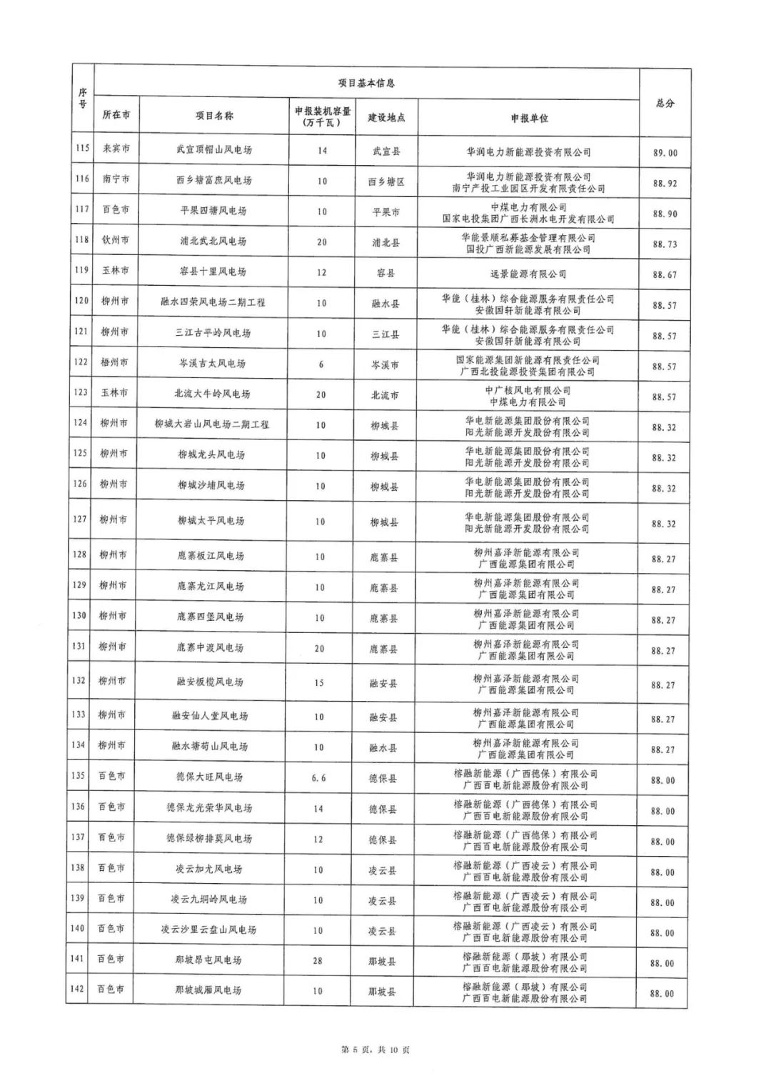 广西壮族自治区能源局关于2024年广西陆上风电、集中式光伏发电项目竞争性配置评分结果的公示