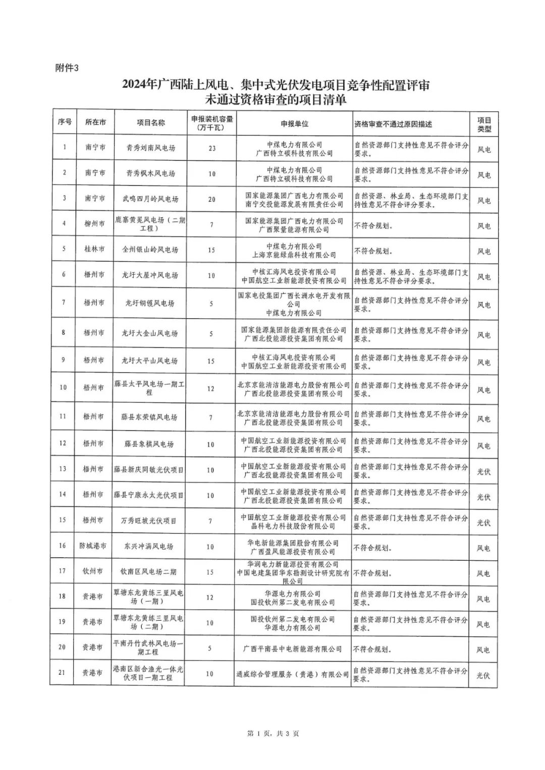 3.2024年陆上风电、集中式光伏发电项目竞争性配置评审未通过资格审查的项目清单