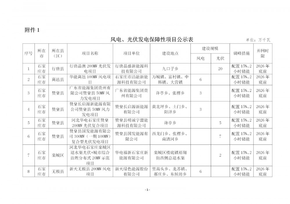 附件1.风电、光伏发电保障性项目公示表