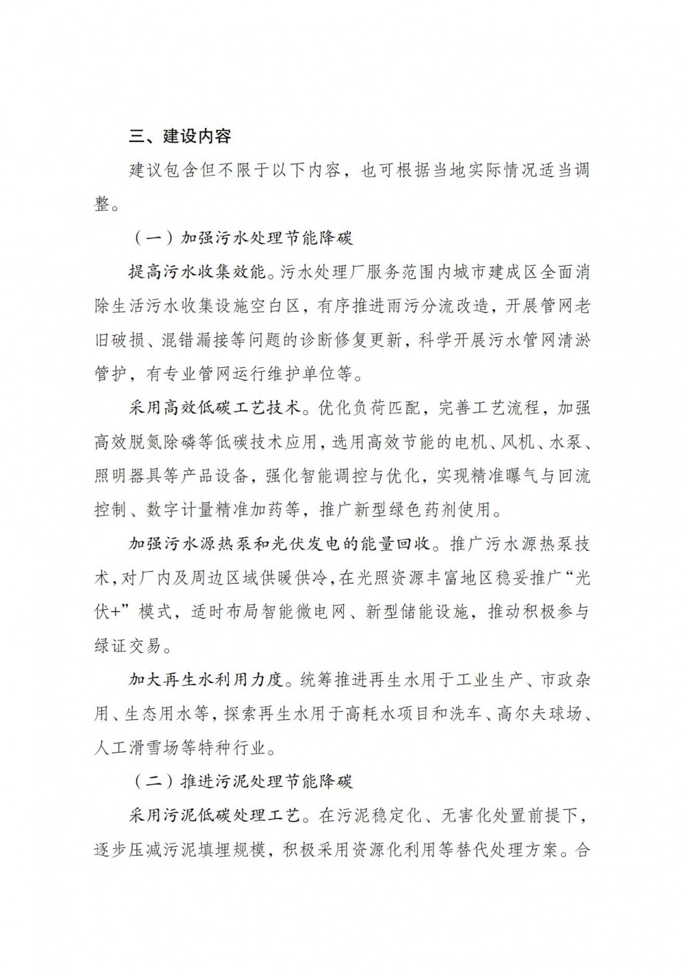 新改扩建一批。对标遴选出的标杆厂相关指标和经验做法,结合中央预算内投资、大规模设备更新等工作,鼓励支持新建、改建、扩建一批污水处理厂并同步完善配套管网,提升生活污水收集处理效能,降低能耗物耗和二氧化碳排放,促进能源资源综合回收利用。