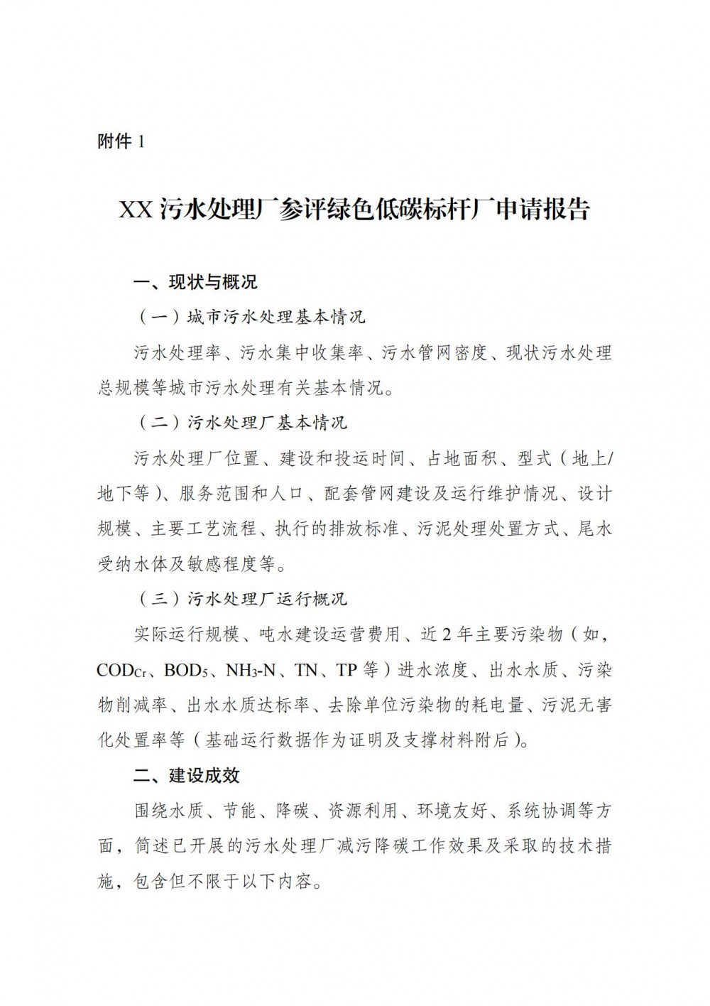 附件1.XX污水处理厂参评绿色低碳标杆厂申请报告