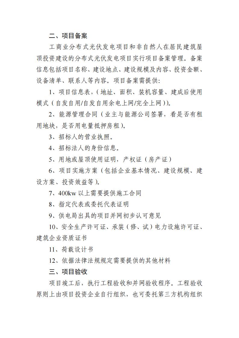 文件指出,分布式光伏发电项目相关的投资、设计、安装和运维等服务企业应在市场监管部门登记,具有独立法人资格,没有严重不良信誉和违法记录。光伏发电项目的设计、咨询和安装应符合国家相关法律法规和技术标准的要求。