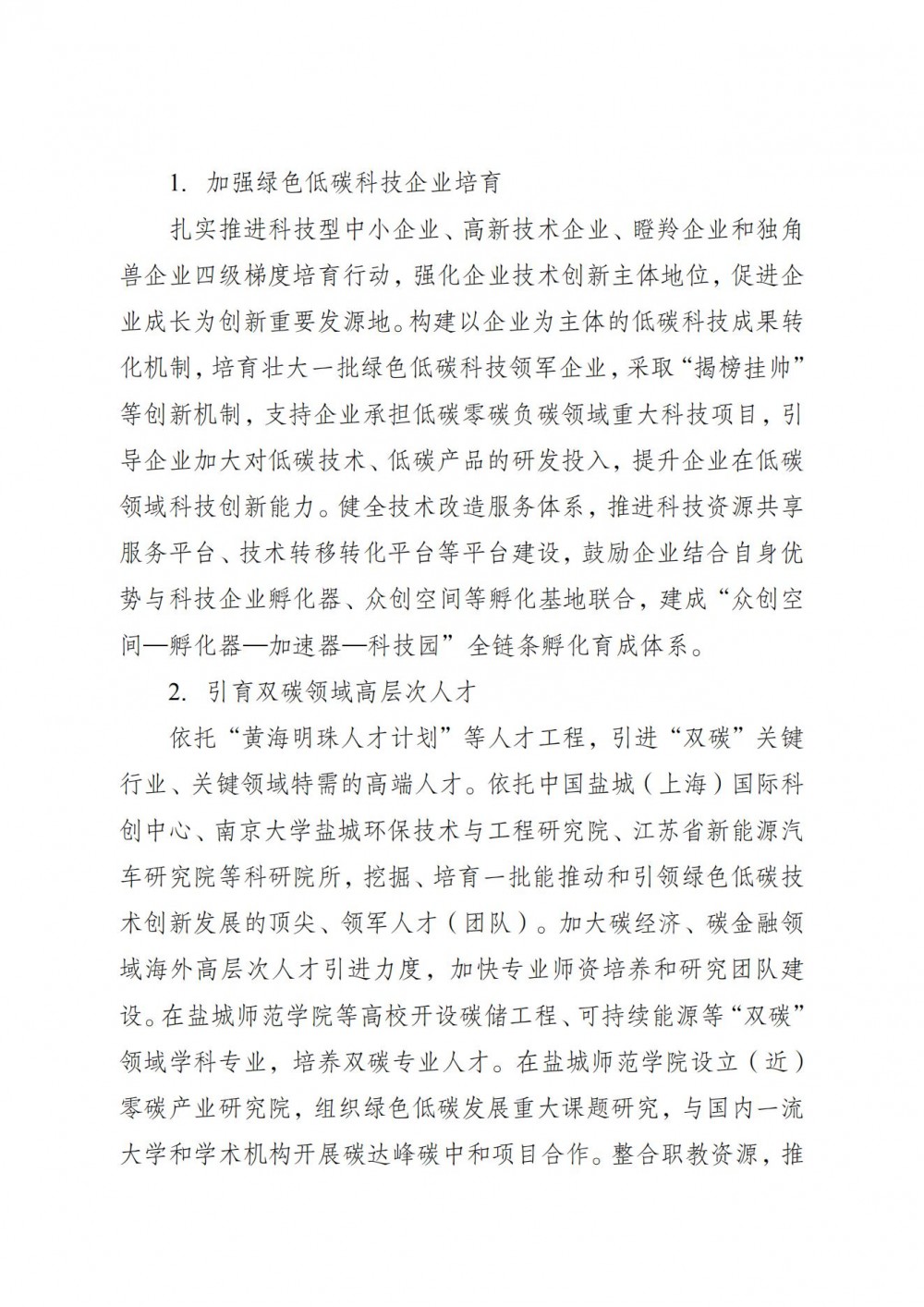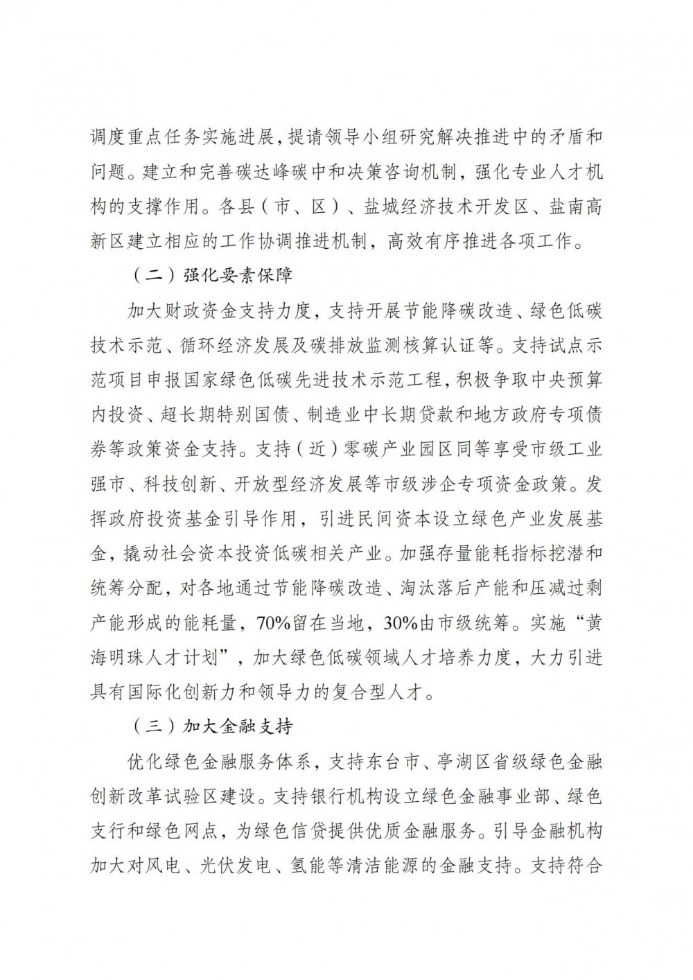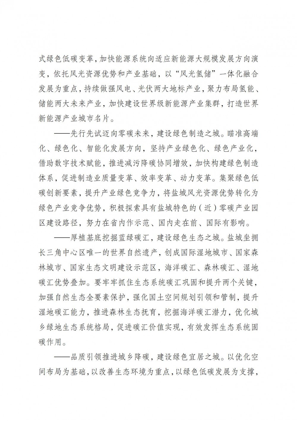 盐城市人民政府关于印发国家碳达峰试点(盐城)实施方案的通知