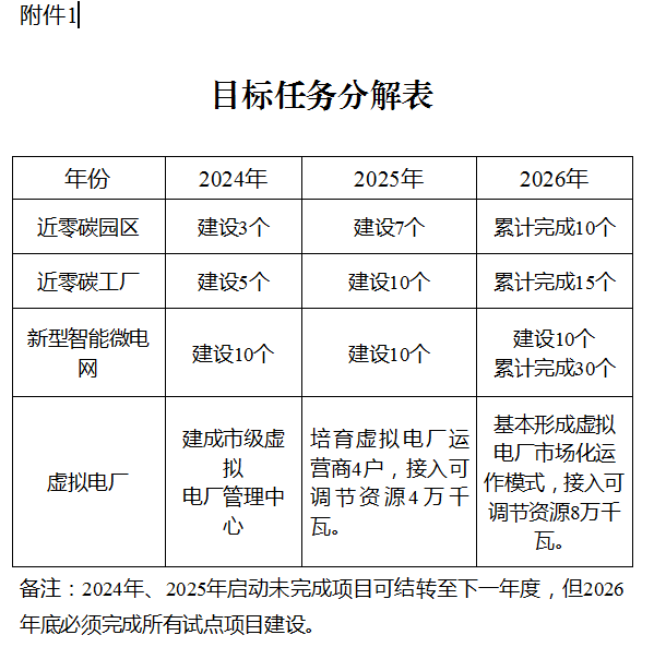 文件指出,到2026年末,完成10个以上近零碳园区、15个以上近零碳工厂、30个新型智能微电网试点示范项目的建设。