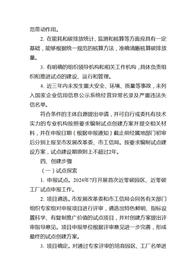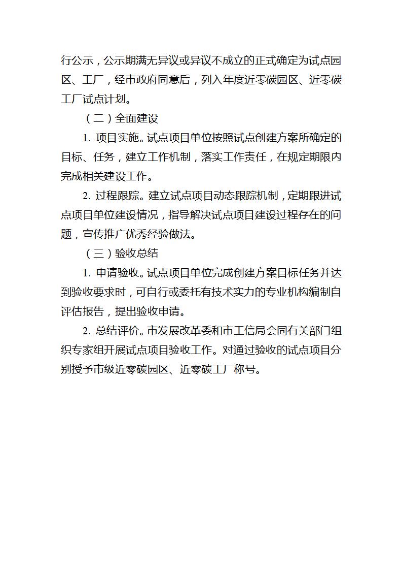 2024—2026年,分三年推进近零碳标杆建设,重点选择绿色产业园区、外贸出口相对集中的园区、“危污乱散低”综合治理“绿岛”园区、科创产业园区等园区类型和市级及以上绿色工厂,推进近零碳园区、近零碳工厂试点。以近零碳园区为主阵地,同步开展近零碳工厂培育和新型智能微电网、虚拟电厂等新能源应用场景推广试点。到2026年末,完成10个以上近零碳园区、15个以上近零碳工厂、30个新型智能微电网试点示范项目的建设。