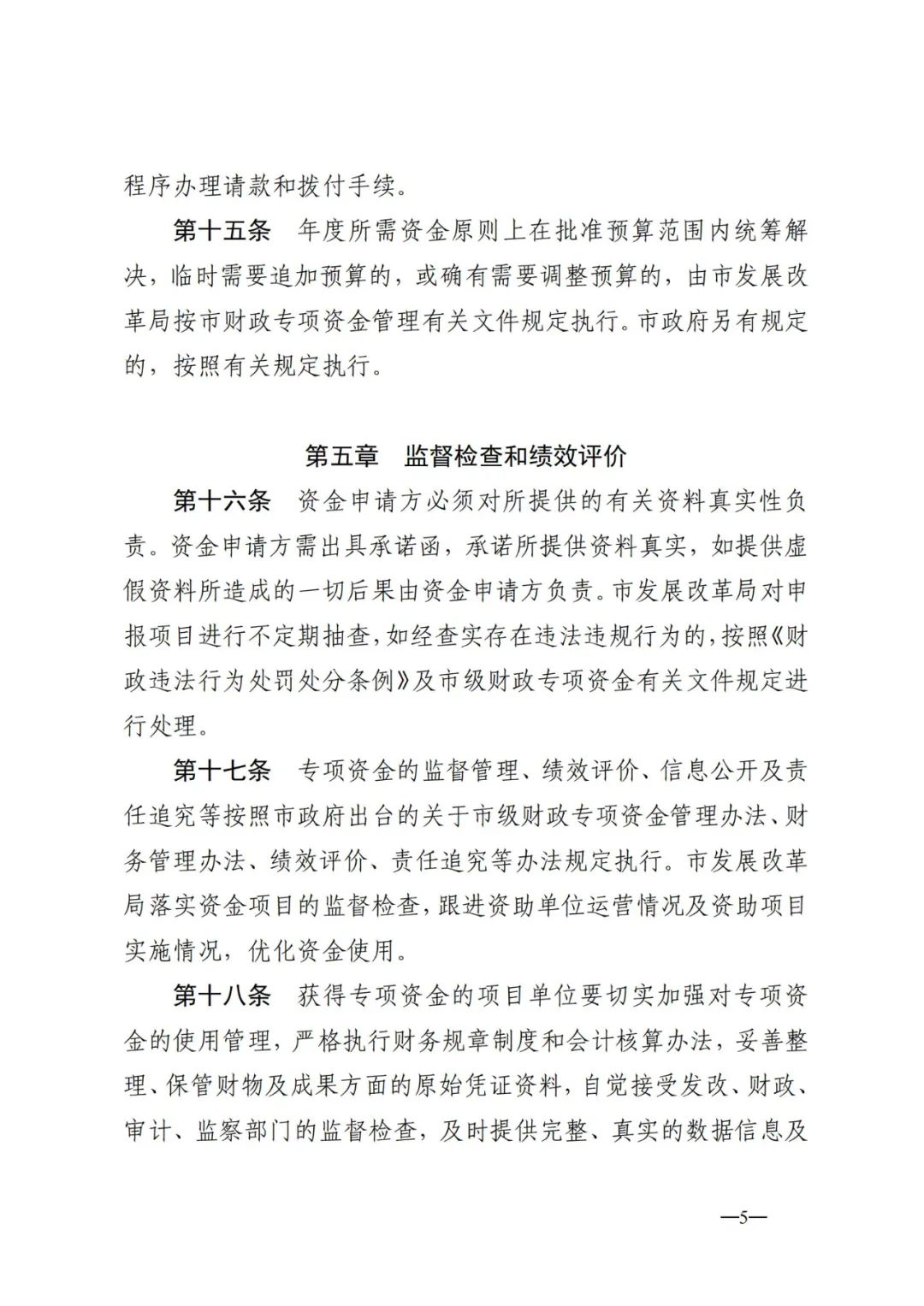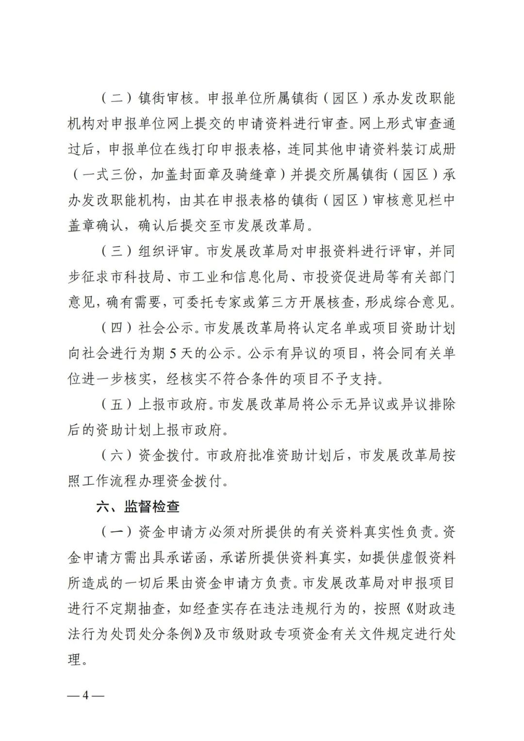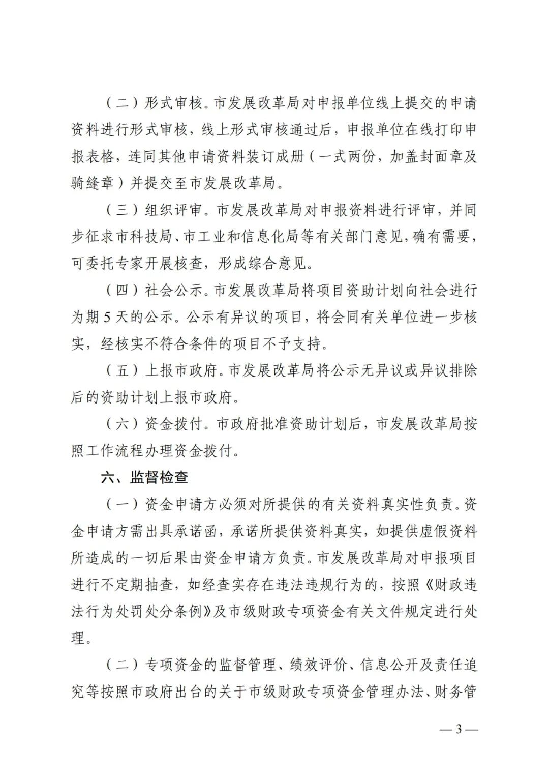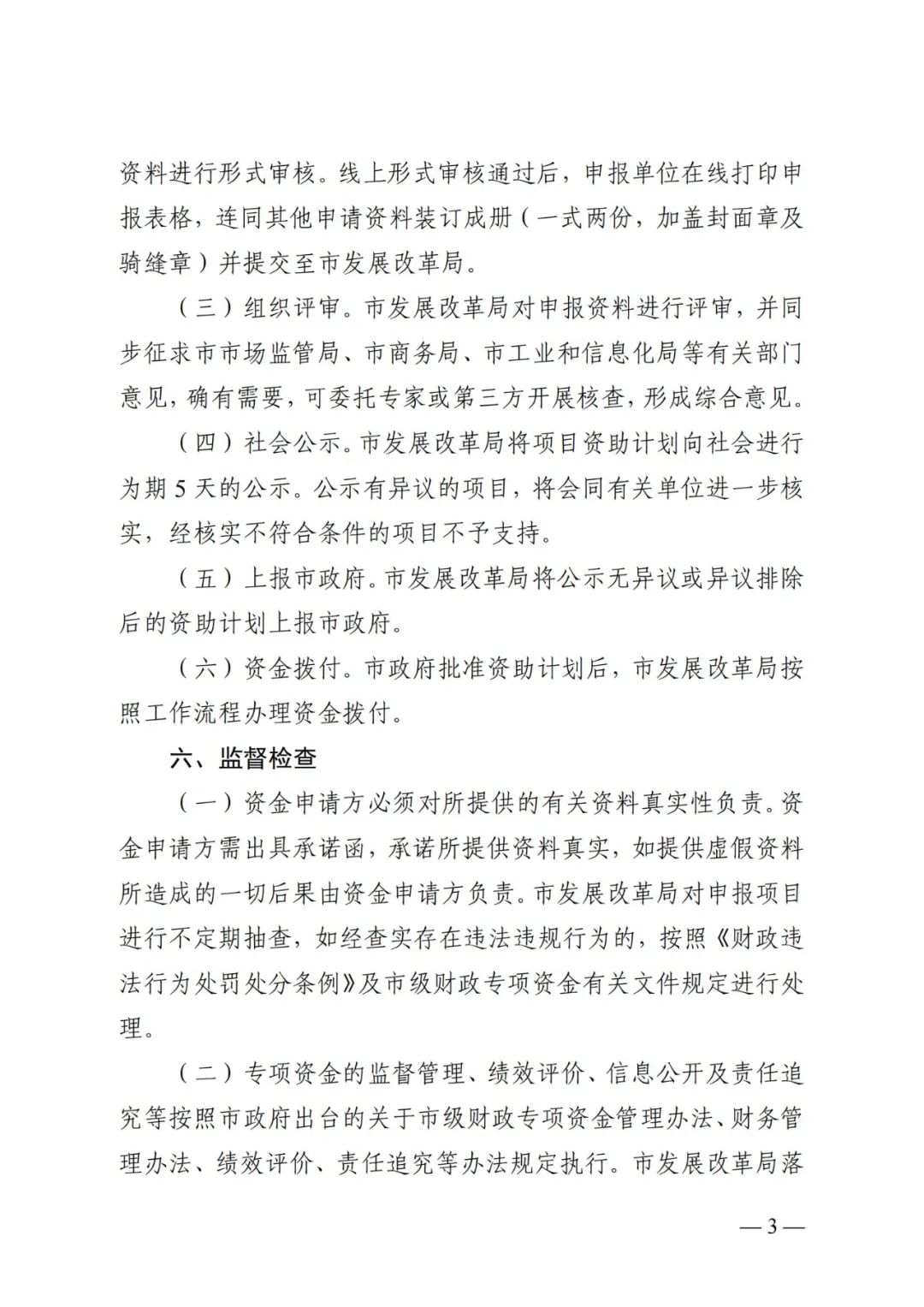 (五)拨付。市发展改革局将公示无异议或异议排除后的资助计划上报市政府,市政府批准资助计划后,市发展改革局按照工作流程办理资金拨付。