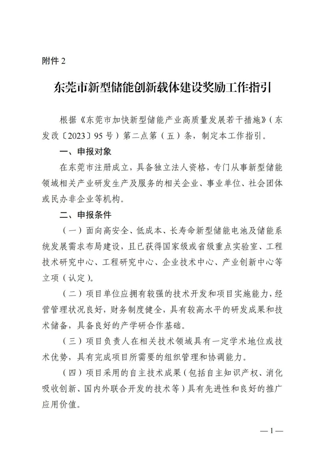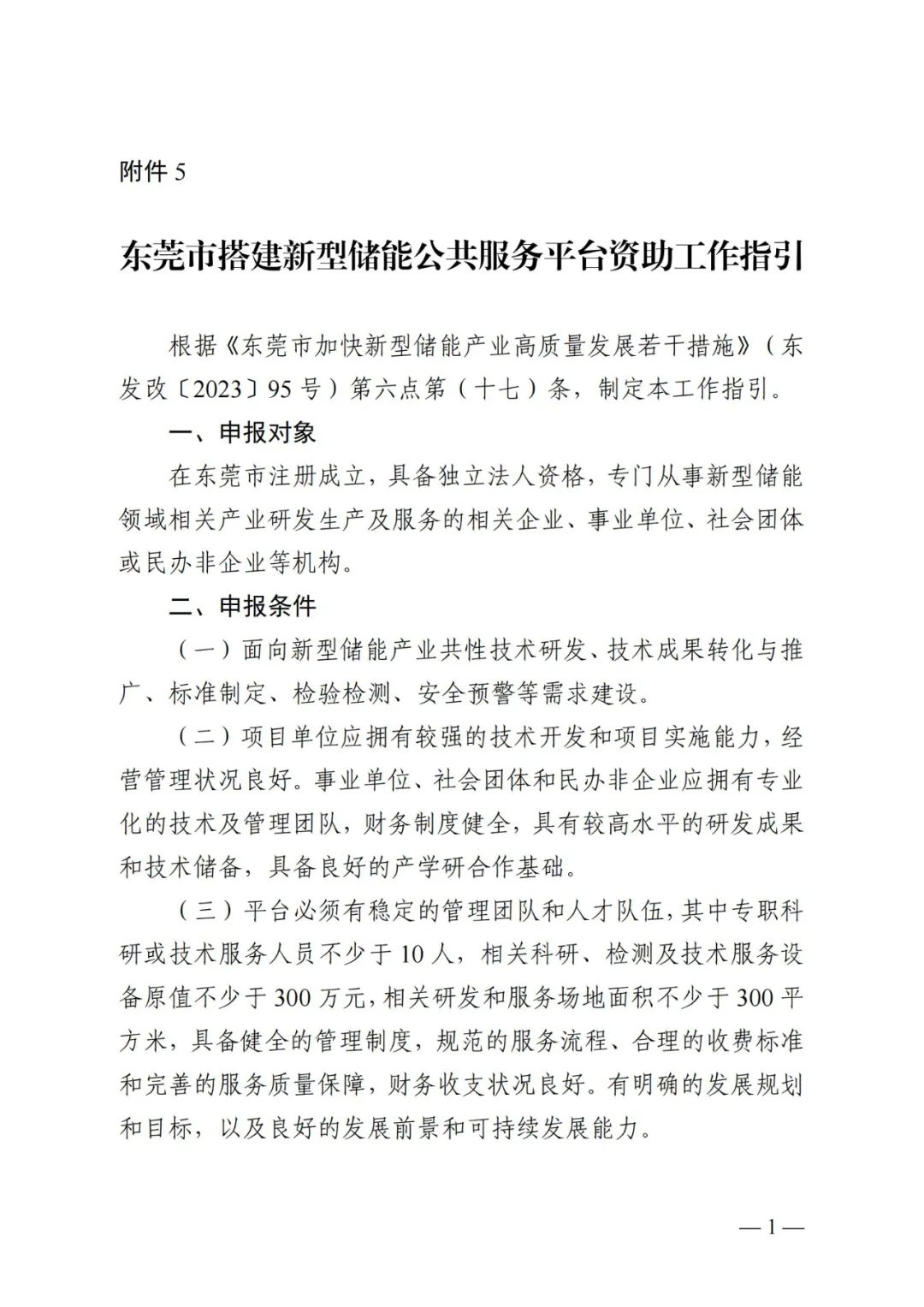 附:《东莞市新型储能产业高质量发展专项资金管理办法》及相关工作指引.pdf