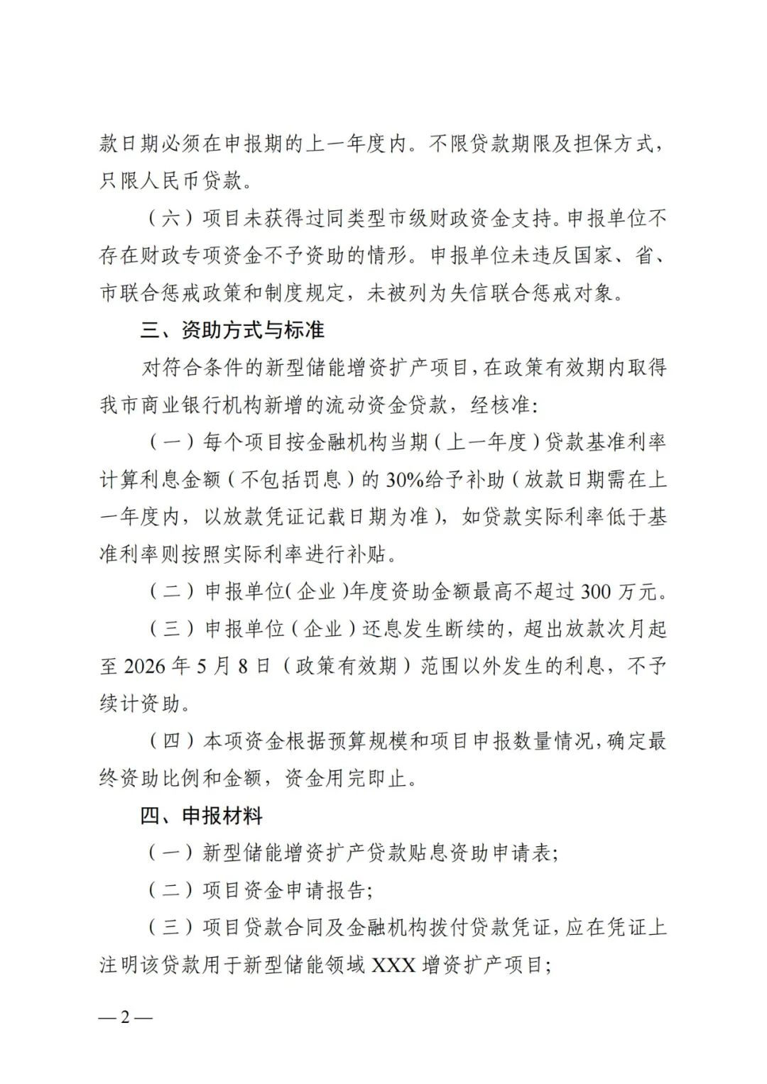对符合条件的新型储能增资扩产项目,在政策有效期内取得我市商业银行机构新增的流动资金贷款,经核准: