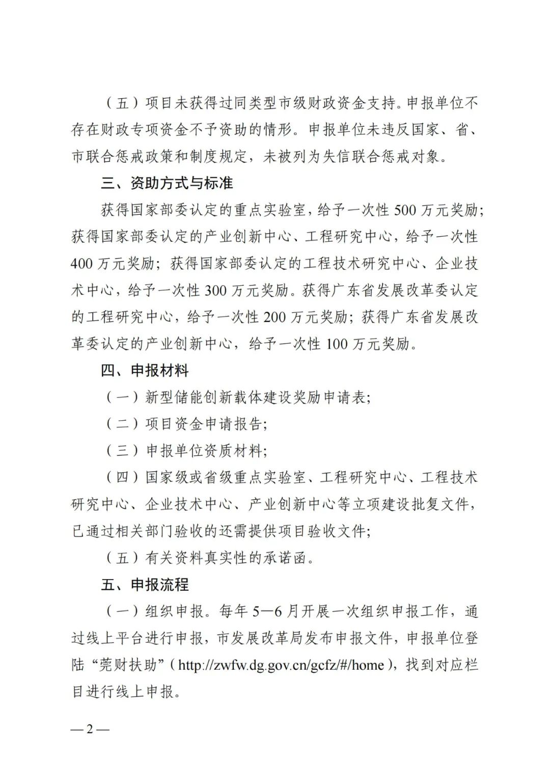 根据《东莞市加快新型储能产业高质量发展若干措施》(东发改〔2023〕95号)《东莞市新型储能产业高质量发展专项资金管理办法》(东发改〔2023〕187号)及相关工作指引,现就组织开展我市2023年度东莞市新型储能高质量发展专项资金申报工作的有关事项通知如下: