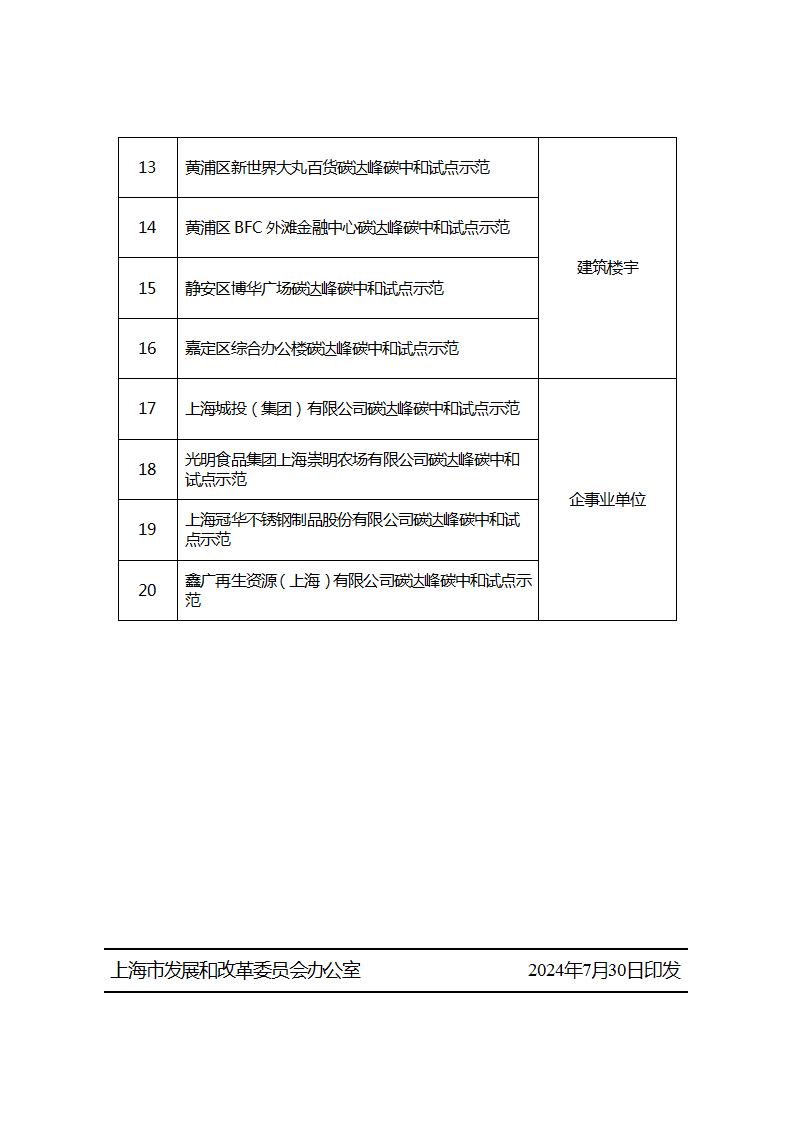 7月31日,上海市发改委发布关于上海市首批碳达峰碳中和试点示范创建名单的公示。
