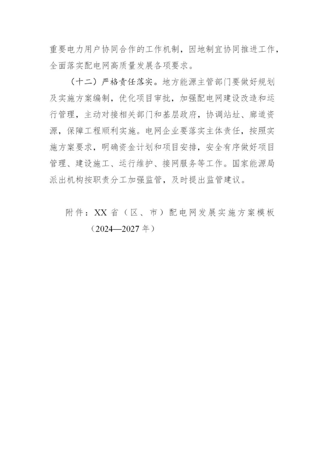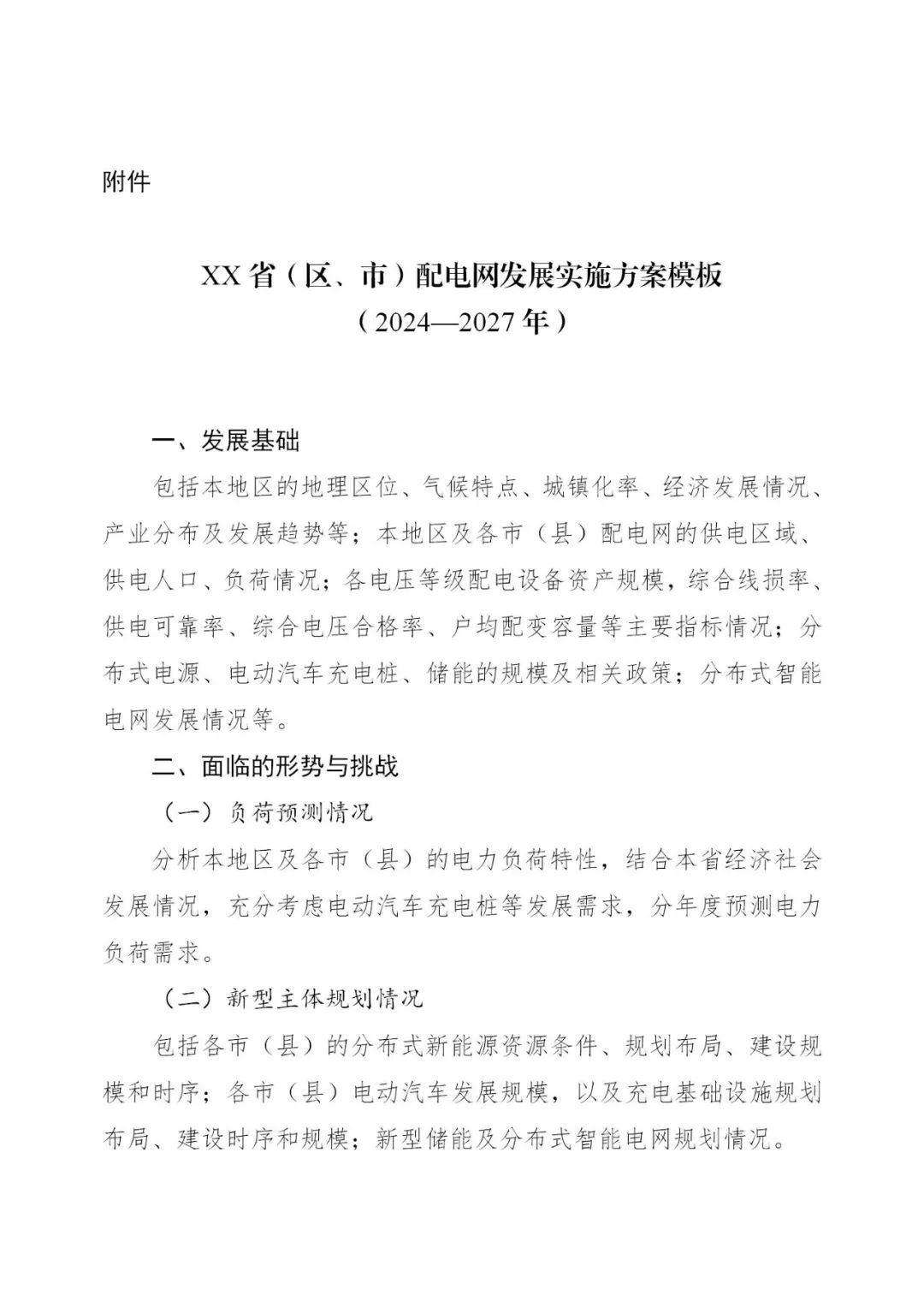 附件:《XX省(区、市)配电网发展实施方案模板(2024—2027年)》