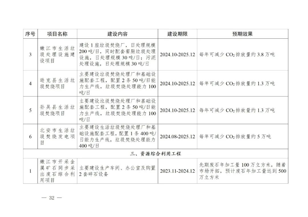 5.资源循环增绿提效。农林废弃物循环利用。推广深翻还田、捡拾打捆、秸秆离田多元利用等技术,积极培育秸秆收储运和综合利用,推进秸秆全量利用,建立畜禽粪污资源化利用可持续运行机制,加大规模养殖场粪污处理设施装备配套建设,全面提高畜禽养殖粪污综合利用水平,加大农膜回收利用。“两网融合”体系日趋规范。通过引入社会资本,建成黑河市全诚可回收物分拣中心,配合原有生活垃圾处理厂和医疗废物处理厂,完善终端处置体系,提升各类垃圾终端处置能力,实现垃圾分类处理、资源利用、废物处置的无缝高效衔接。