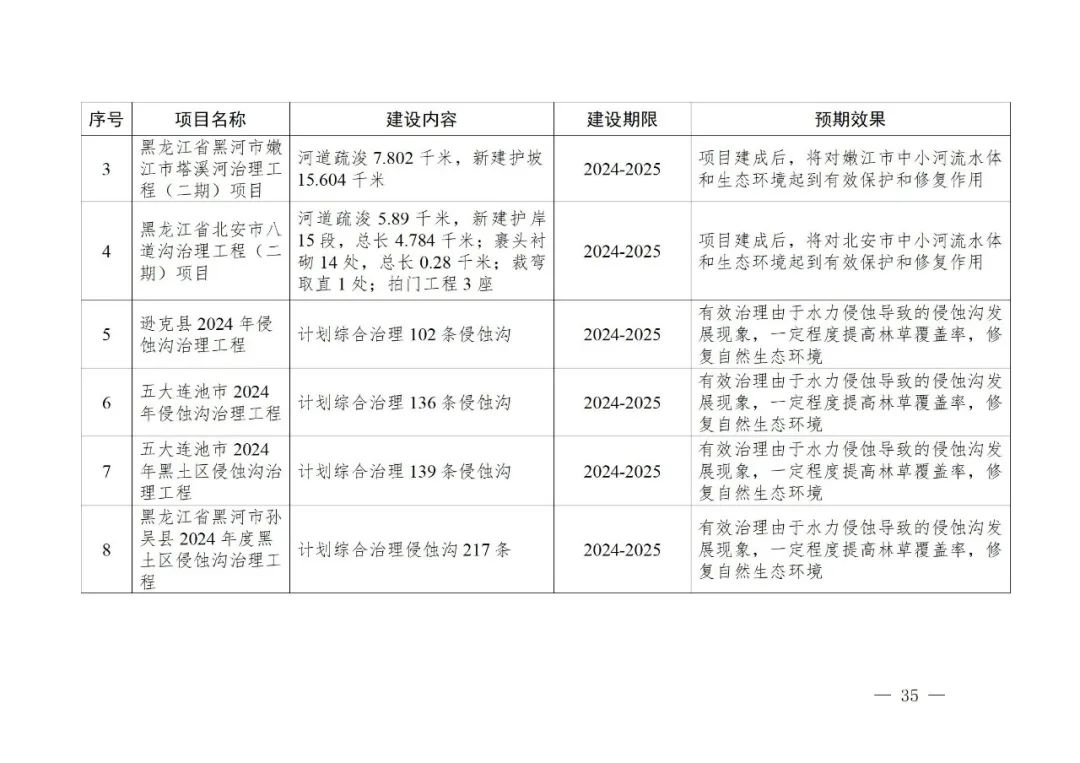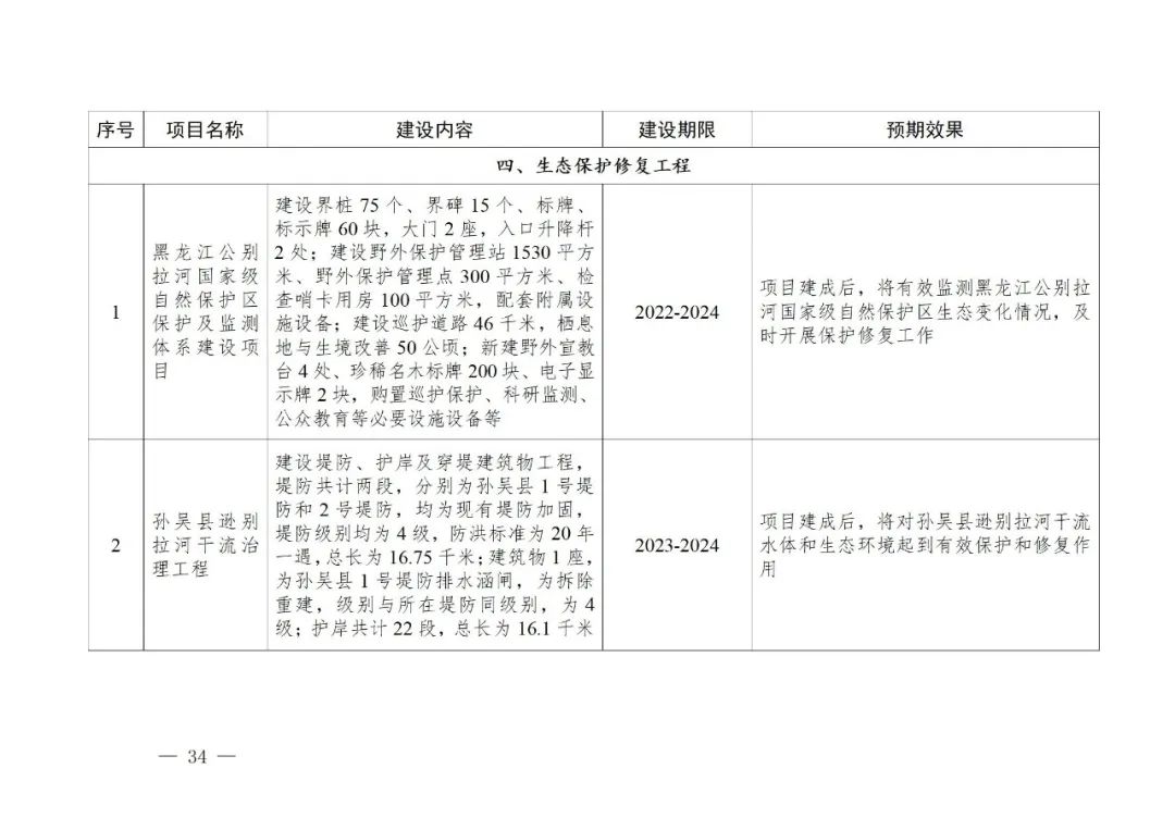 7.筑牢生态安全屏障。生态环境质量明显改善。统筹推进蓝天、碧水、净土、美丽乡村、原生态五大保卫战和13场标志性战役,污染防治攻坚战136项具体任务全部完成。生态保护与修复扎实推进。开展“绿盾”自然保护区监督检查专项行动,加大自然保护区内环境问题整改力度。划定并严守生态保护红线。创新生态修复治理模式。黑河市历史遗留矿山面积8340.87公顷。2022—2023年,通过自然恢复、转型利用和工程恢复,共完成历史遗留矿山生态修复面积2459.70公顷。