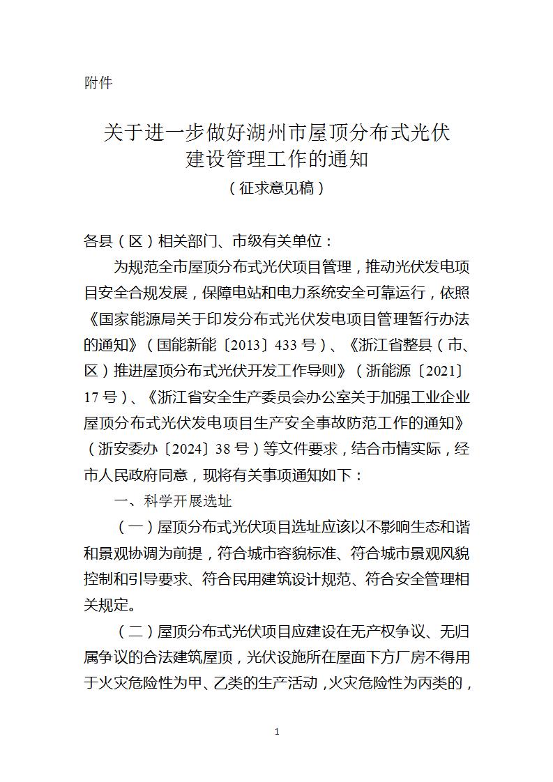 附件:关于进一步做好湖州市屋顶分布式光伏建设管理工作的通知(征求意见稿).docx