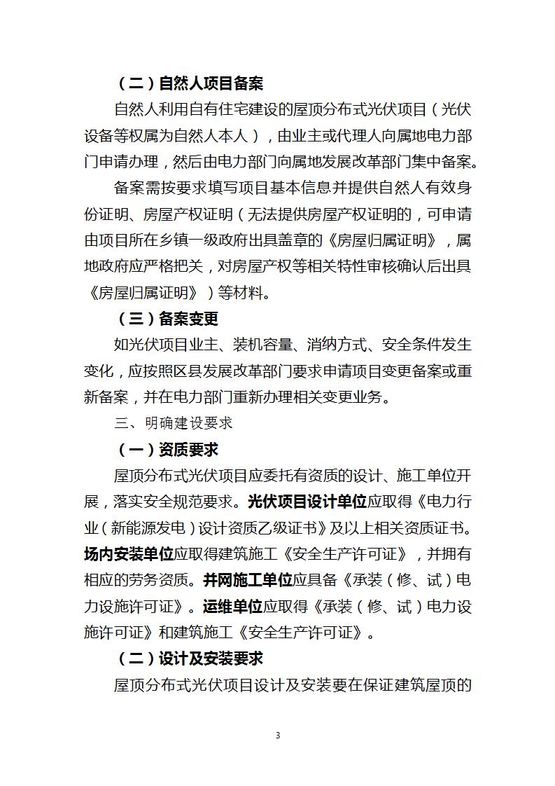 屋顶分布式光伏项目及其配储投产应符合国家有关技术标准和管理规定,具备可观可测可控可调功能(“四可”功能),以保障新能源消纳,对于存量不具备“四可”功能的屋顶分布式光伏项目,由供电企业进行功能改造,项目业主做好配合工作。