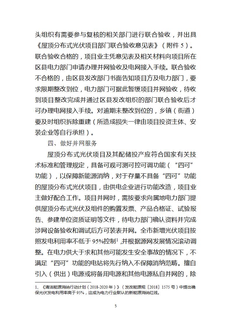 全市新增光伏项目按照发电利用率不低于95%控制,并根据源网发展情况滚动调整。在电力供大于求和其他可能发生安全事故的情况下,不满足“四可”功能的电站将先行纳入不保障消纳范畴。