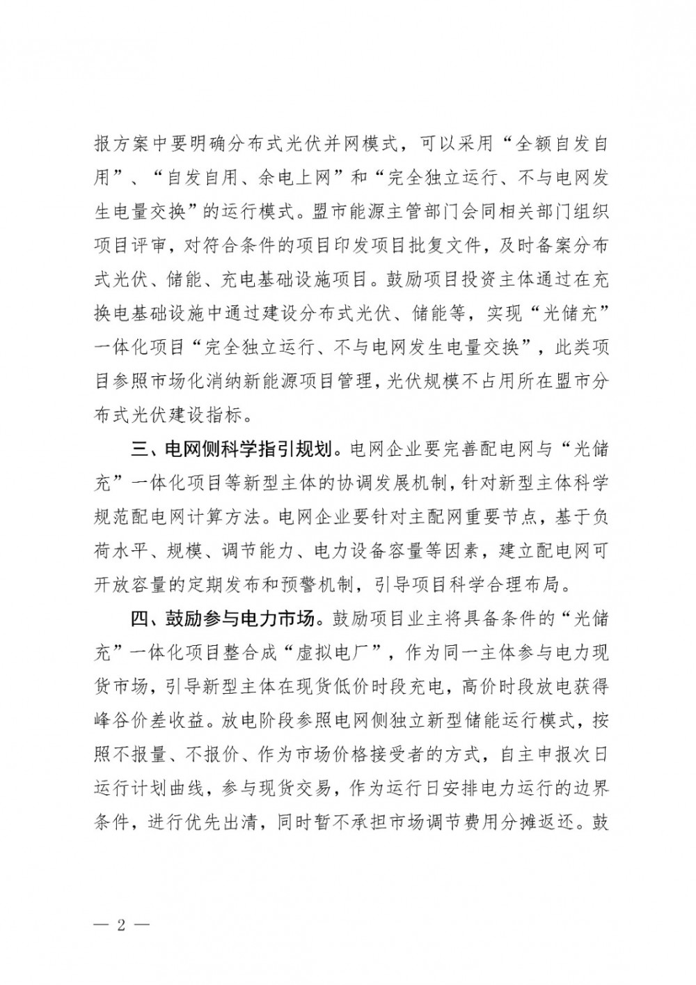 优化项目审批管理。由项目投资主体自行编制“光储充”一体化项目申报方案,报送项目所在盟市能源主管部门。项目申报方案中要明确分布式光伏并网模式,可以采用“全额自发自用”、“自发自用、余电上网”和“完全独立运行、不与电网发生电量交换”的运行模式。盟市能源主管部门会同相关部门组织项目评审,对符合条件的项目印发项目批复文件,及时备案分布式光伏、储能、充电基础设施项目。鼓励项目投资主体通过在充换电基础设施中通过建设分布式光伏、储能等,实现“光储充”一体化项目“完全独立运行、不与电网发生电量交换”,此类项目参照市场化消纳新能源项目管理,光伏规模不占用所在盟市分布式光伏建设指标。