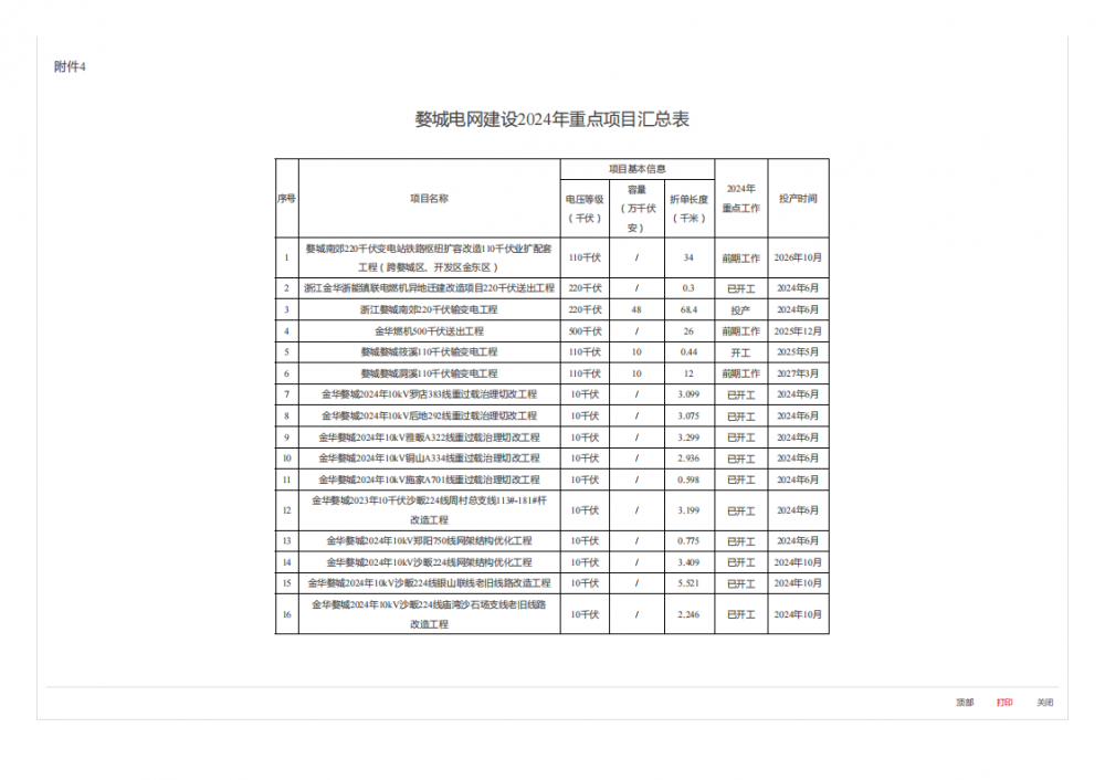 4.婺城电网建设2024年重点项目汇总表