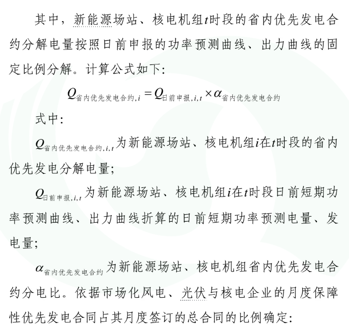 在本次试运行中,优先发电合约的分配方式发生了变化——《辽宁省电力市场结算实施细则(V3.0)》第二十四条明确了在现货结算时的优先发电合约分解的计算方式: