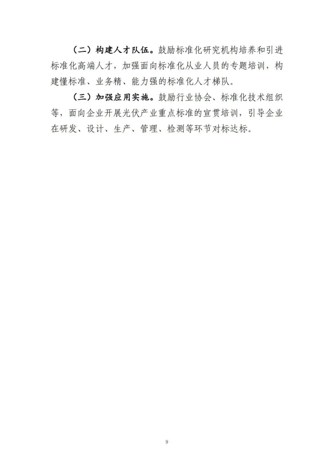 文件指出,到2026年,标准与产业科技创新的联动水平持续提升,新制定国家标准和行业标准60项以上,实现光伏产业基础通用标准和重点标准的全覆盖。鼓励社会团体研制先进团体标准,支持我国企事业单位参与制定国际标准20项以上,促进光伏产业全球化发展。