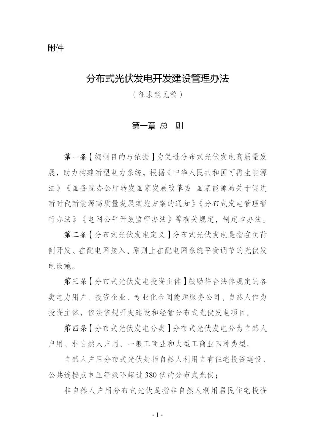 附件:分布式光伏发电开发建设管理办法(征求意见稿)