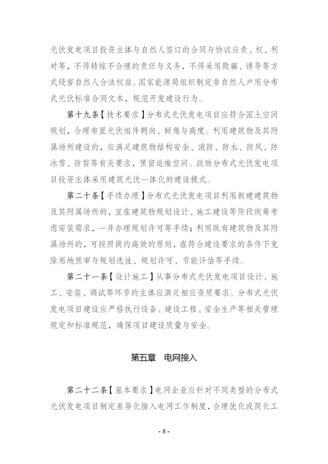 各地要优化营商环境,规范市场秩序,不得设置违反市场公平竞争的相关条件。各类投资主体要充分考虑电网承载力、消纳能力等因素,规范开发建设行为,保障分布式光伏健康有序发展。