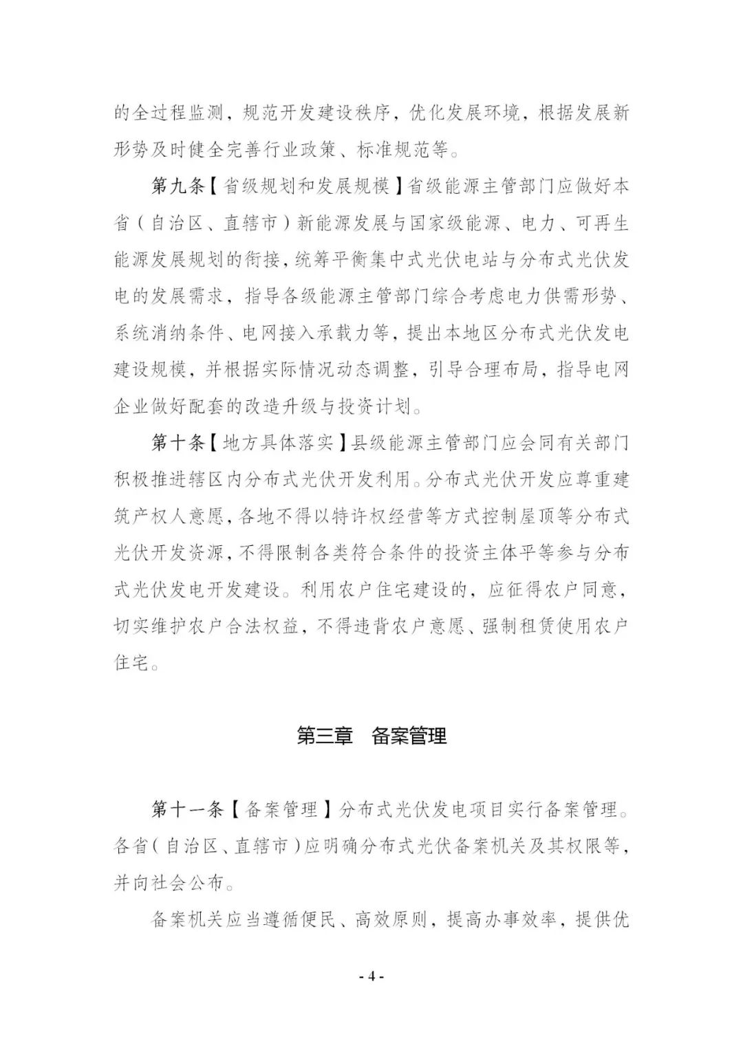 分布式光伏开发应尊重建筑产权人意愿,各地不得以特许权经营等方式控制屋顶等分布式光伏开发资源,不得限制各类符合条件的投资主体平等参与分布式光伏发电开发建设。利用农户住宅建设的,应征得农户同意,切实维护农户合法权益,不得违背农户意愿、强制租赁使用农户住宅。