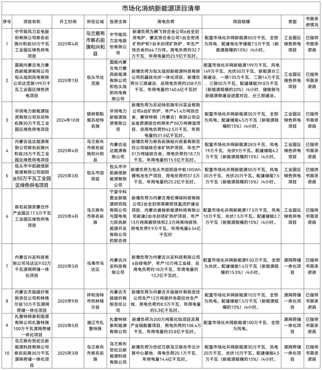 附件:市场化消纳新能源项目清单