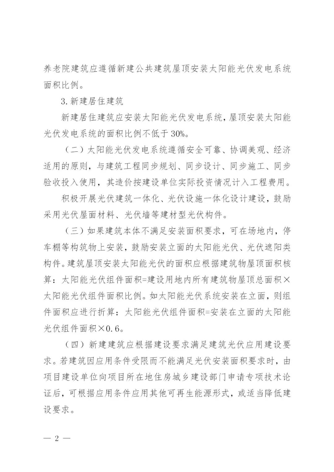 新建居住建筑应安装太阳能光伏发电系统,屋顶安装太阳能光伏发电系统的面积比例不低于30%。