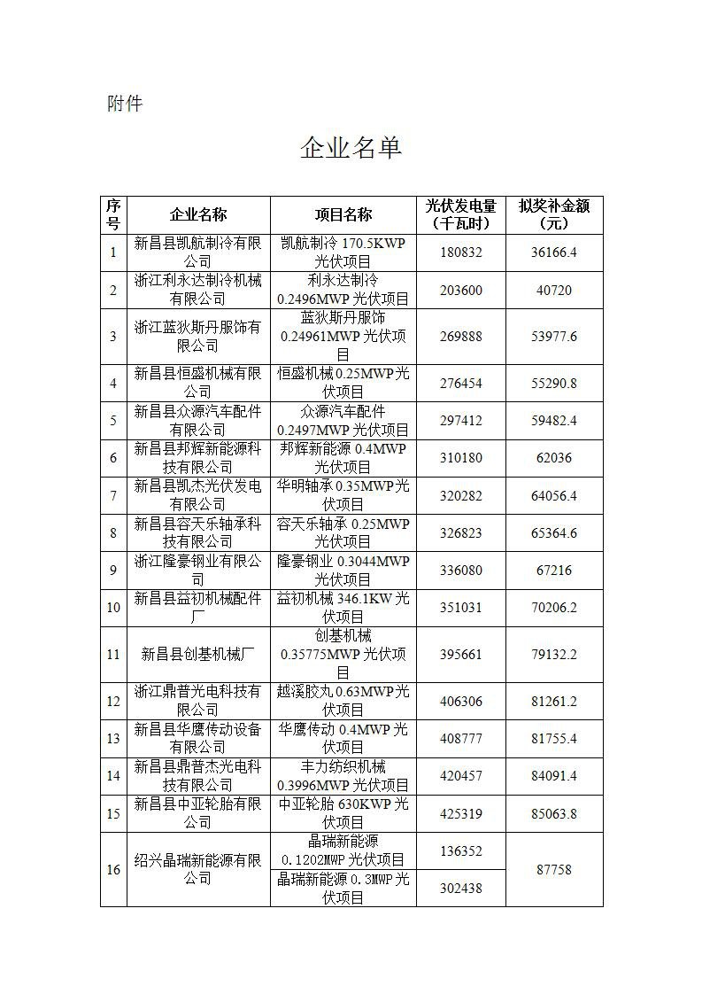 11月13日,浙江新昌县发改局发布《关于对2022年度第二批非户用分布式光伏项目奖补金额进行公示》。