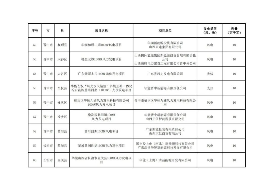 关于山西省2024年竞争性配置风电、光伏发电项目评审结果的公示