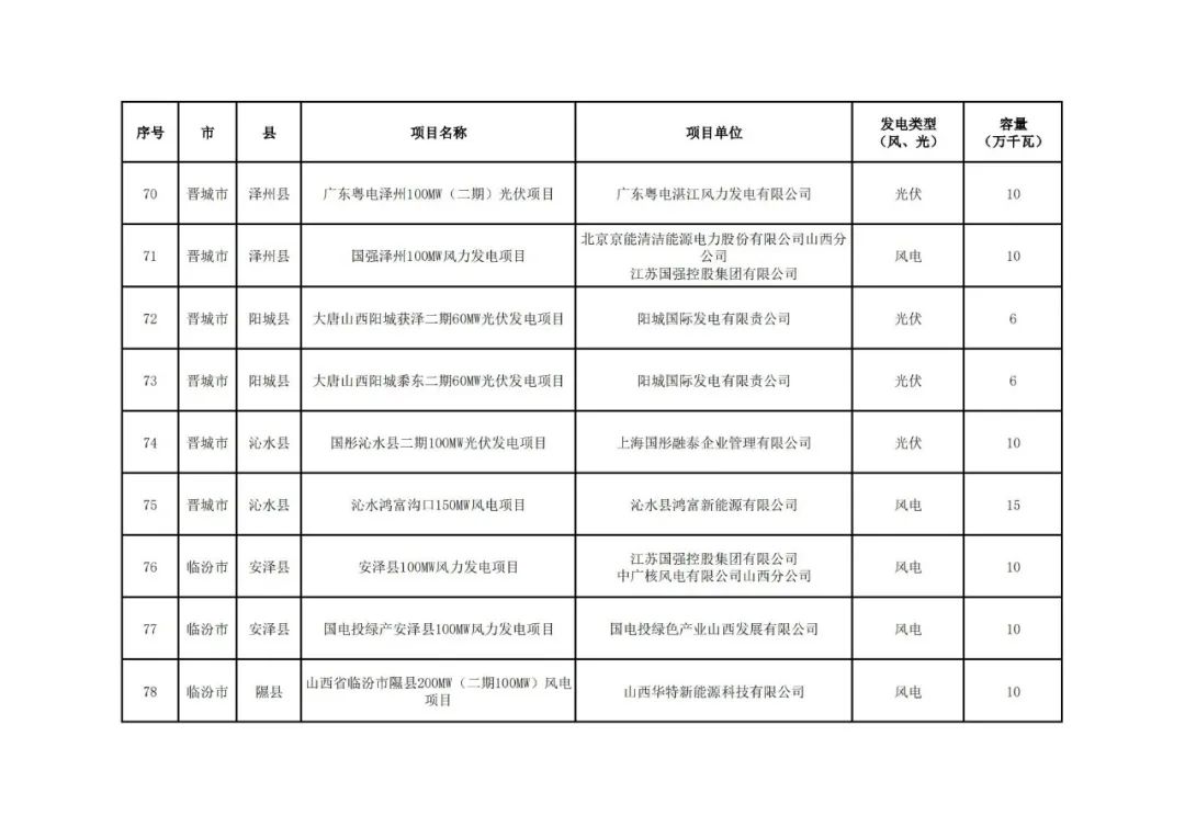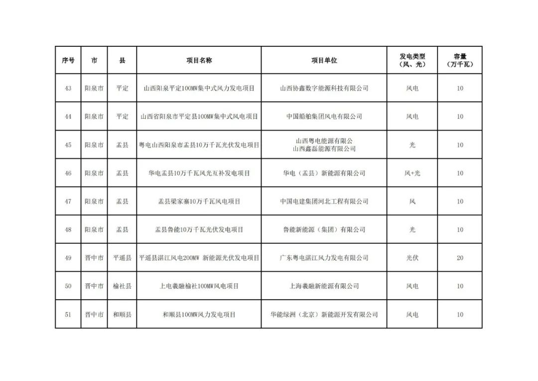 11月27日,山西省能源局发布《关于山西省2024年竞争性配置风电、光伏发电项目评审结果的公示》。