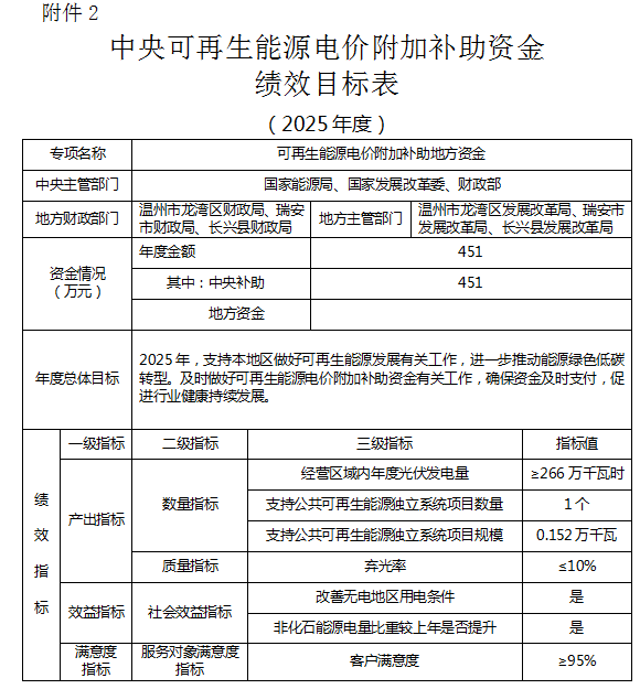 2.中央可再生能源电价附加补助资金绩效目标表(2025年度)