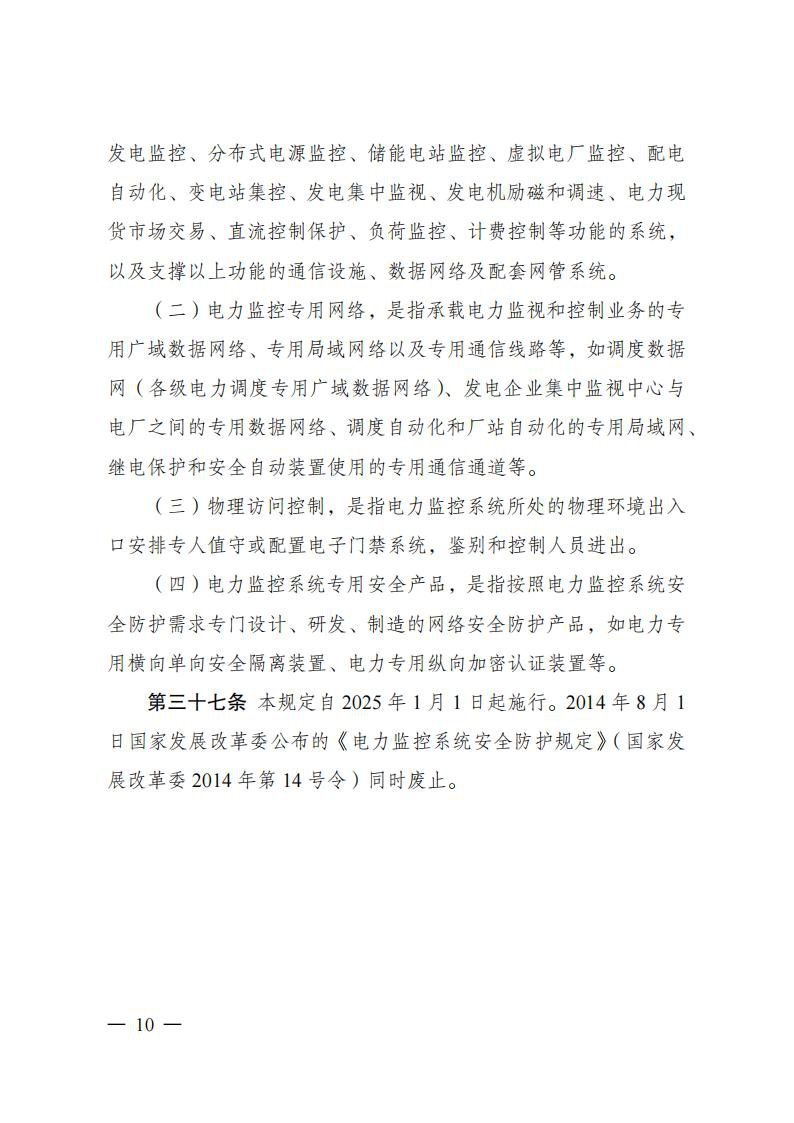 12月11日,中华人民共和国国家发展和改革委员会令第27号发布,文件明确《电力监控系统安全防护规定》已经2024年11月25日第18次委务会议审议通过,现予公布,自2025年1月1日起施行。