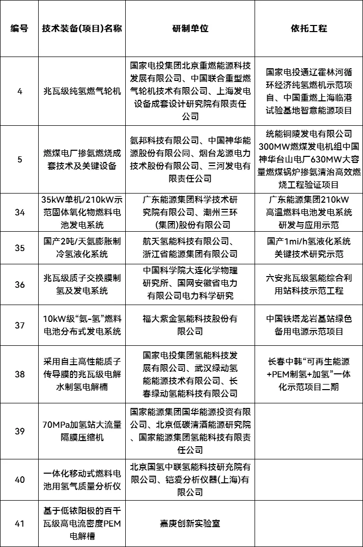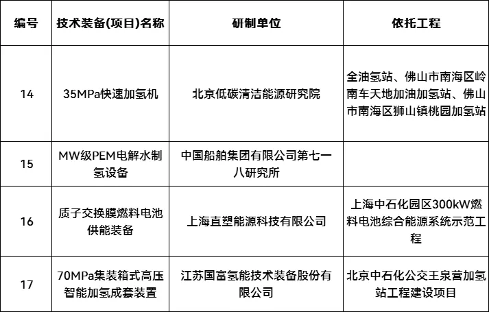 年并未统一公布第二批能源领域首台(套)重大技术装备项目,只发布了2021年度能源领域首台(套)重大技术装备项目。在所有75个装备(项目)中,35MPa 快速加氢机、MW 级PEM电解水制氢设备、质子交换膜燃料电池供能装备和70MPa集装箱式高压智能加氢成套装置4个装备(项目)入选。