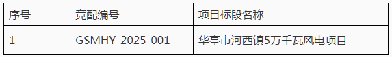 公告显示,华亭市“十四五”第三批新能源项目项目标段为华亭市河西镇5万千瓦风电项目,本次竞争性配置的新能源指标为5万千瓦风电。择优选择项目投资主体,中选后自行承担费用和风险,负责项目的设计、投资、建设以及工程竣工后的运营、维护等工作。