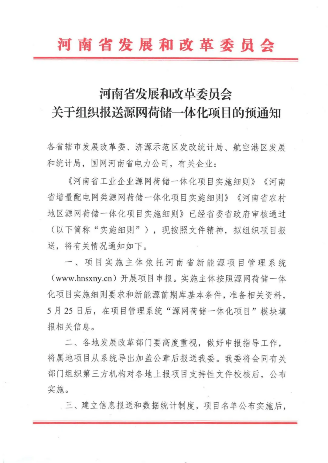 5月20日,河南省发改委发布《关于组织报送源网荷储一体化项目的预通知》。...