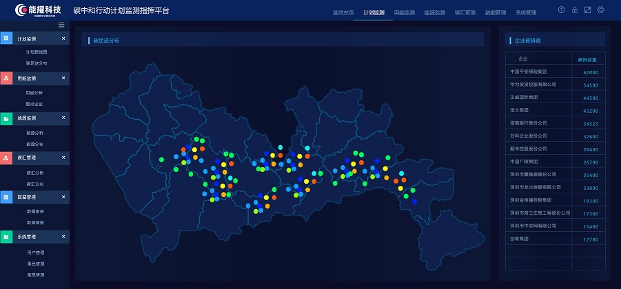 企业碳足迹,形象展示各企业碳排放总量和位置分布。