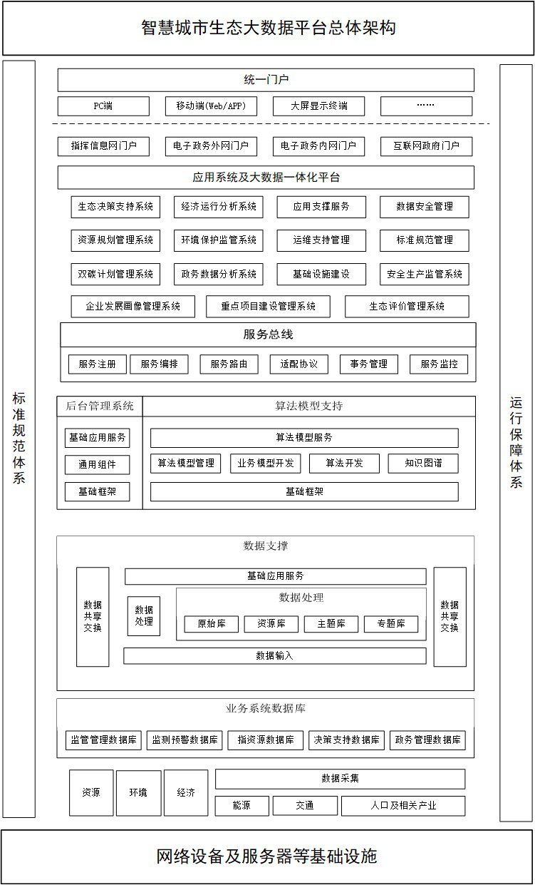 恒盛娱乐城市生态大数据平台是依托信息化手段对产业生态进行恒盛娱乐化管理,以服务产业低碳高效发展为核心,以经济、资源、环境、企业、居民信息获取和处理分析利用为基础,以信息安全为保障,涵盖产业运行的各个关键环节,建设功能完善、技术先进、安全可靠、便利实用的大数据平台,为经济运行、环境保护、风险预测、决策支撑、数据共享提供电子政务支撑,为企业、居民和其它相关机构提供便捷信息服务。项目平台设计和总体结构如下: